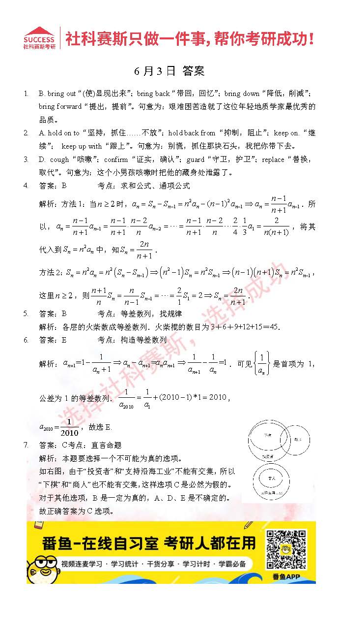 導讀:考研是一場持久戰,保持良好的學習習慣,是能確保復習高效的關鍵。今天社科賽斯MBA備考網小編整理了“2022管理類聯考6月3日每日一練及答案”的內容,希望能對廣大考生有所幫助。