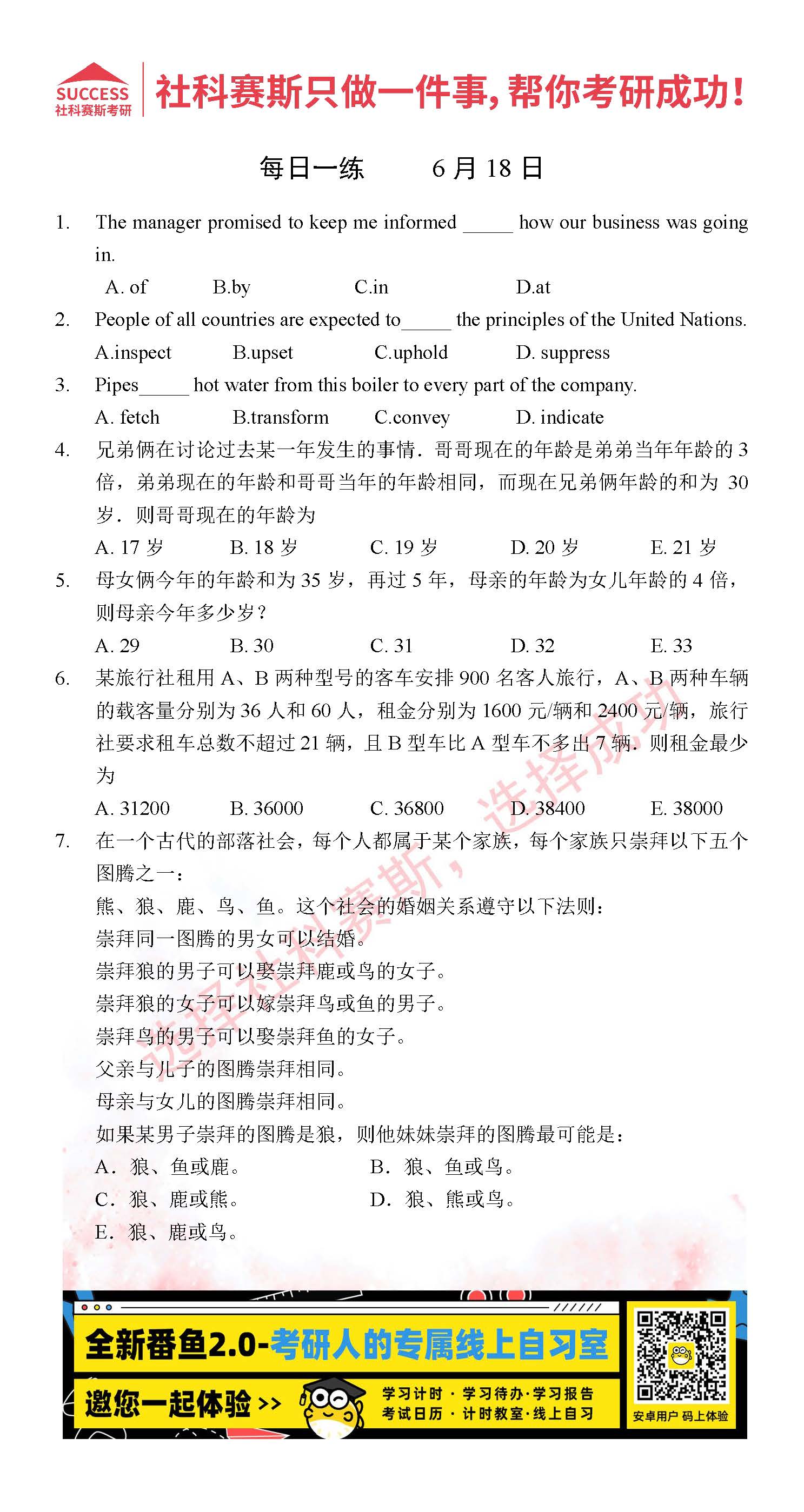 導讀:考研是一場持久戰,保持良好的學習習慣,是能確保復習高效的關鍵。今天社科賽斯MBA備考網小編整理了“2022管理類聯考6月18日每日一練及答案”的內容,希望能對廣大考生有所幫助。