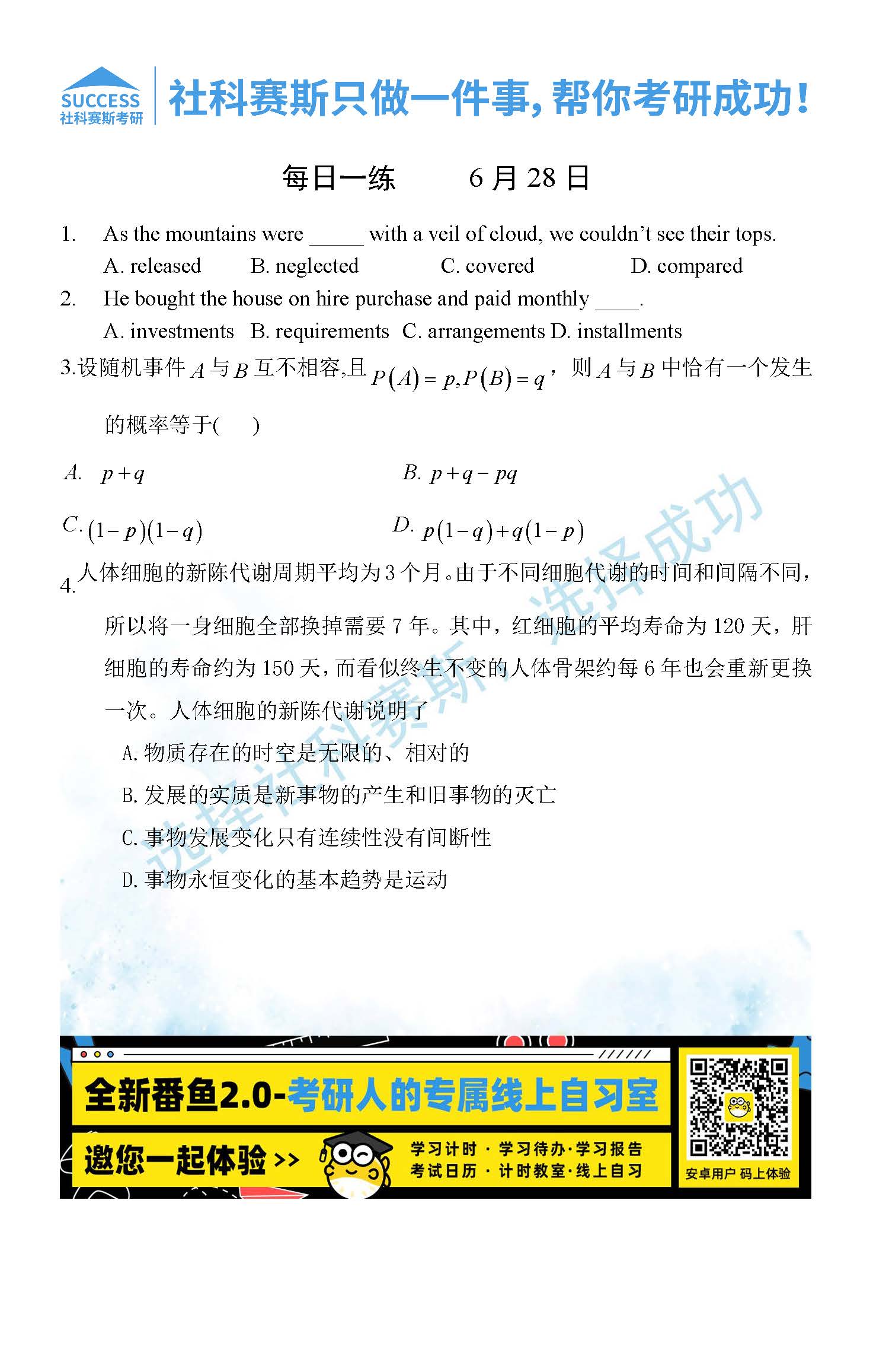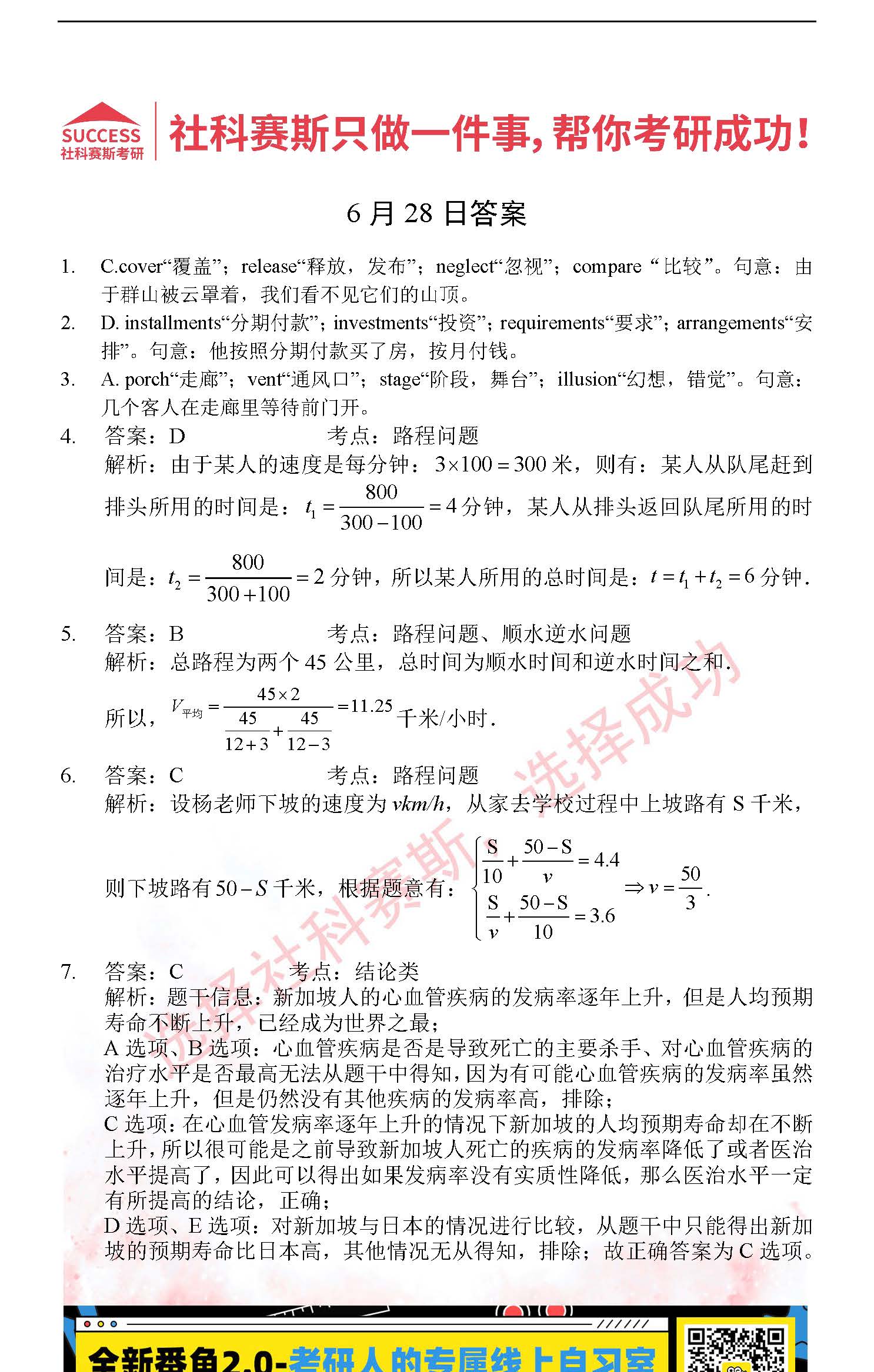 以上就是社科賽斯MBA備考網小編為大家整理“2022管理類聯考6月28日每日一練及答案”的全部內容,希望各位考生堅持利用起來,更多每日一練內容請持續關注MBA備考網管理類聯考每日一練。