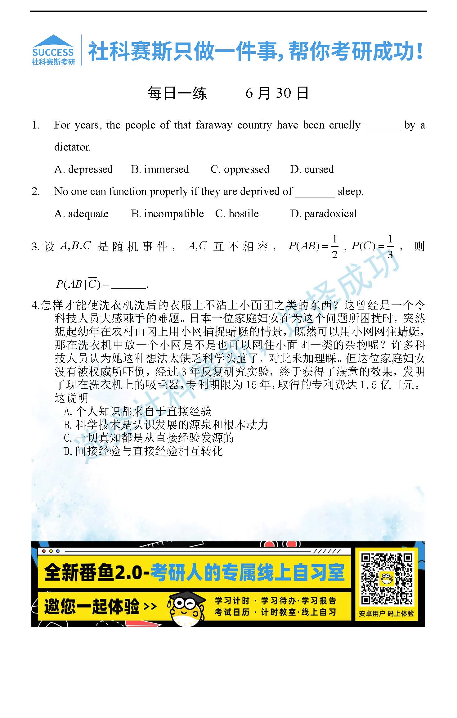 導讀:考研是一場持久戰,保持良好的學習習慣,是能確保復習高效的關鍵。今天社科賽斯MBA備考網小編整理了“2022管理類聯考6月30日每日一練及答案”的內容,希望能對廣大考生有所幫助。
