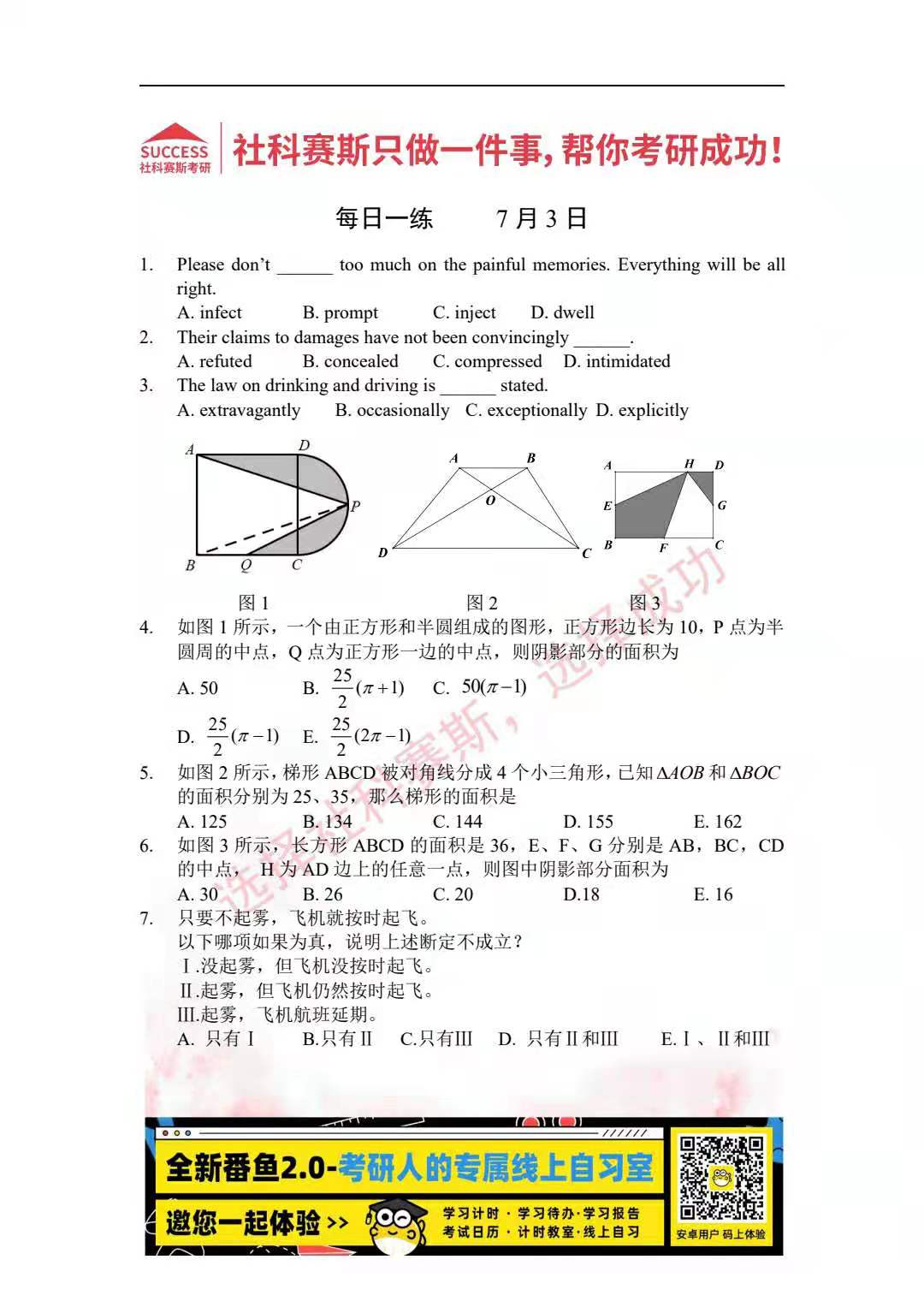導讀:考研是一場持久戰,保持良好的學習習慣,是能確保復習高效的關鍵。今天社科賽斯MBA備考網小編整理了“2022管理類聯考7月3日每日一練及答案”的內容,希望能對廣大考生有所幫助。