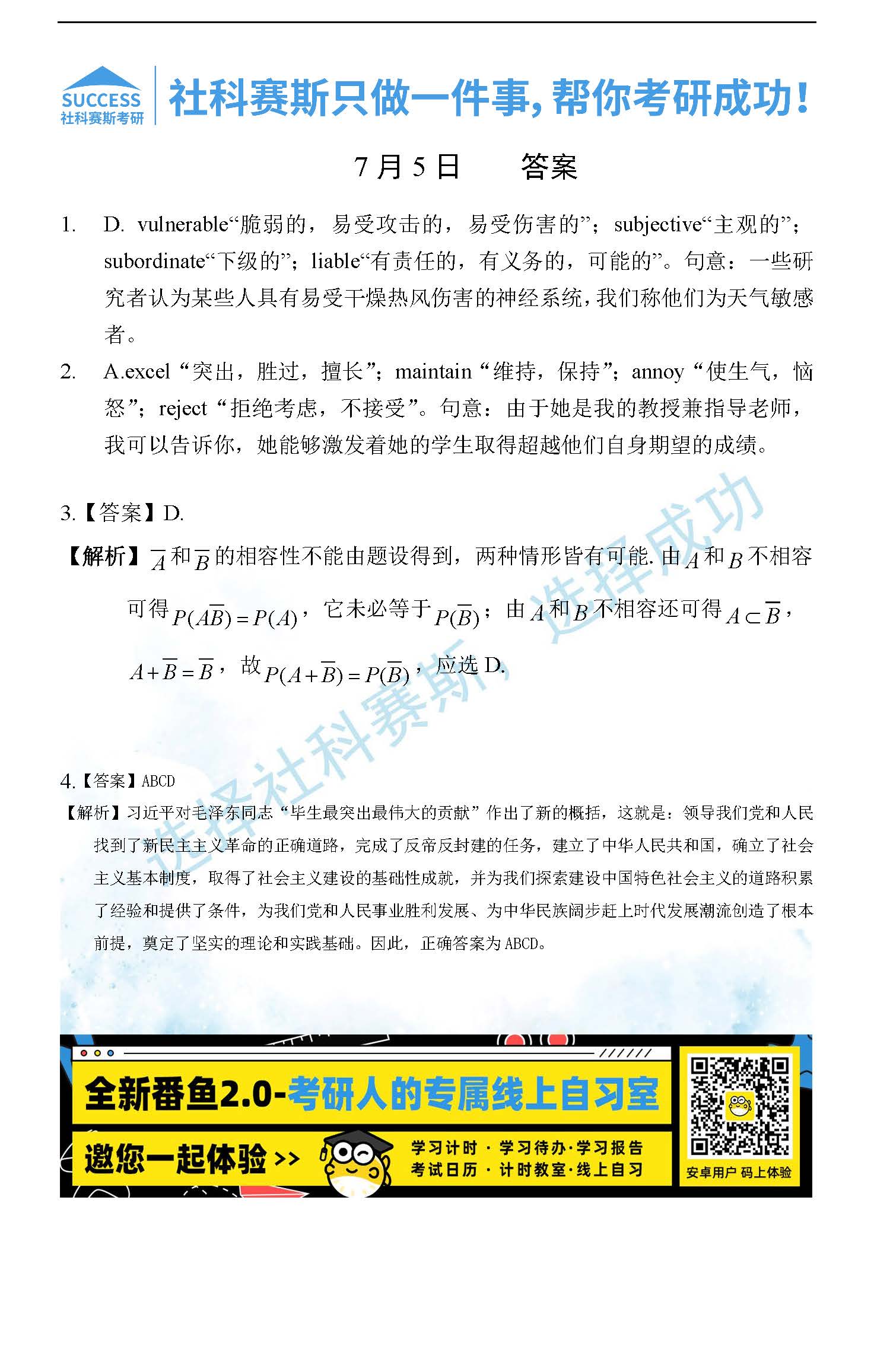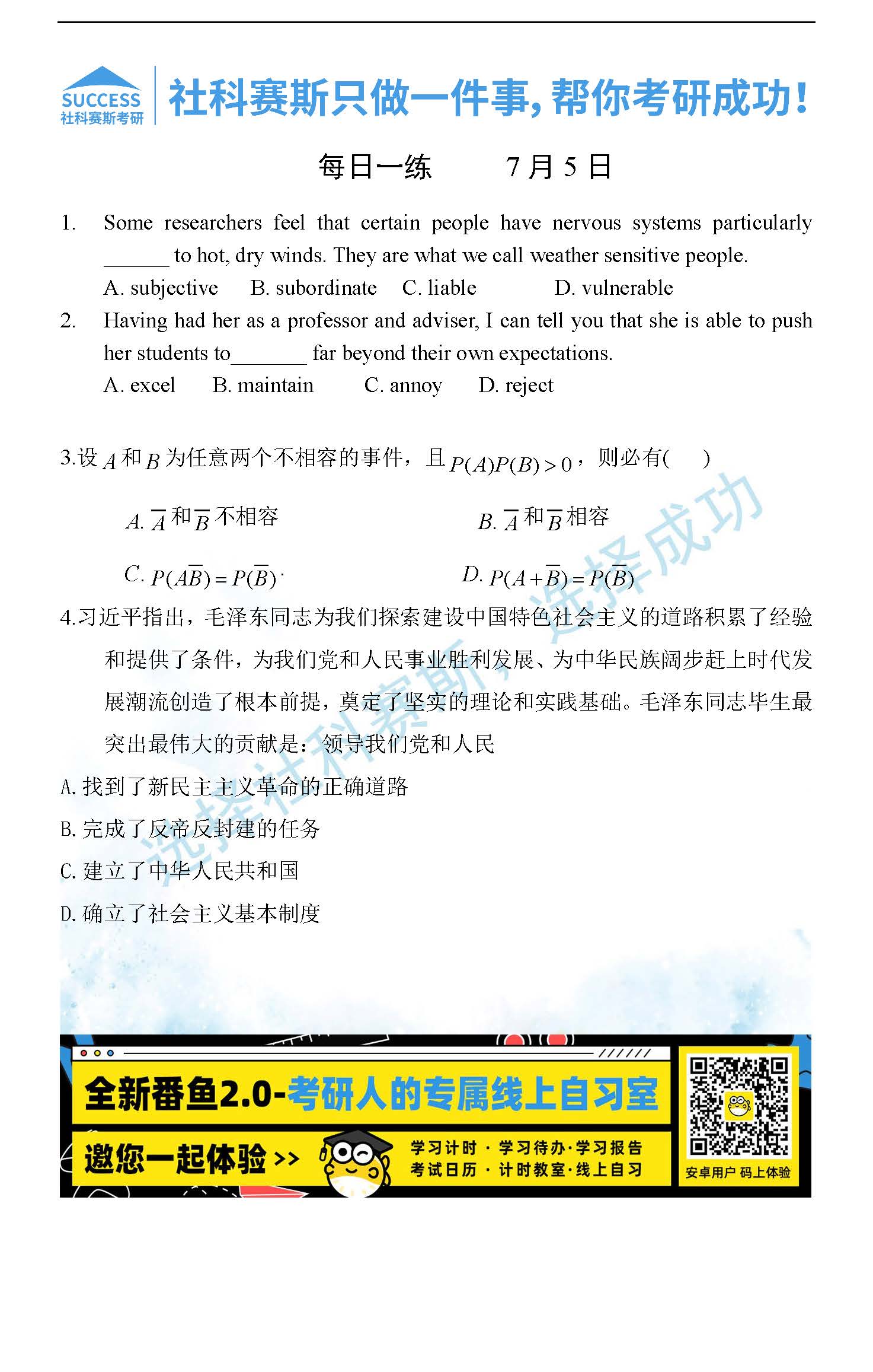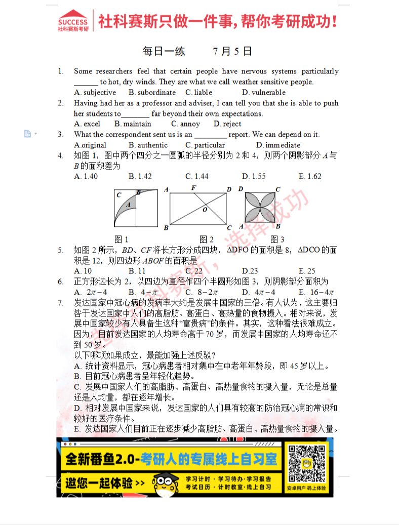 以上就是社科賽斯MBA備考網小編為大家整理2022管理類聯考7月5日每日一練及答案的全部內容,希望各位考生堅持利用起來,更多每日一練內容請持續關注MBA備考網管理類聯考每日一練。