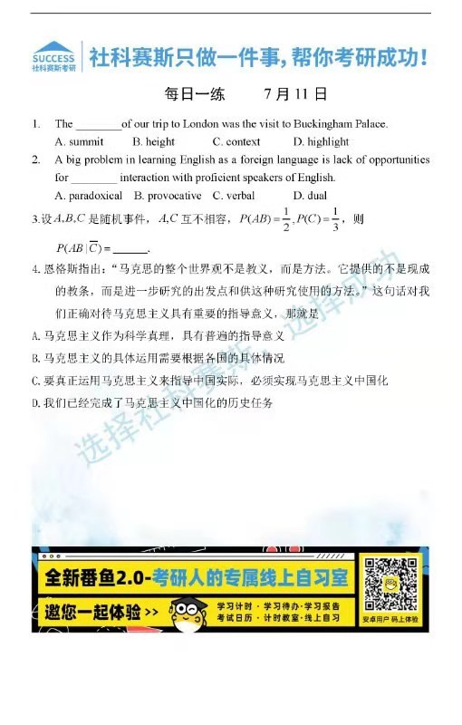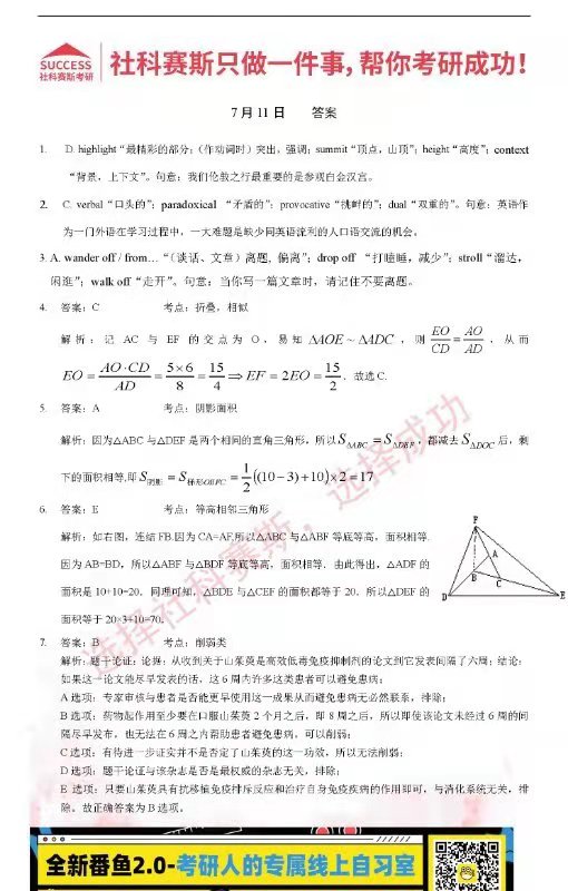 以上就是社科賽斯MBA備考網小編為大家整理“2022管理類聯(lián)考7月11日每日一練及答案”的全部內容,希望各位考生堅持利用起來,更多每日一練內容請持續(xù)關注MBA備考網管理類聯(lián)考每日一練。