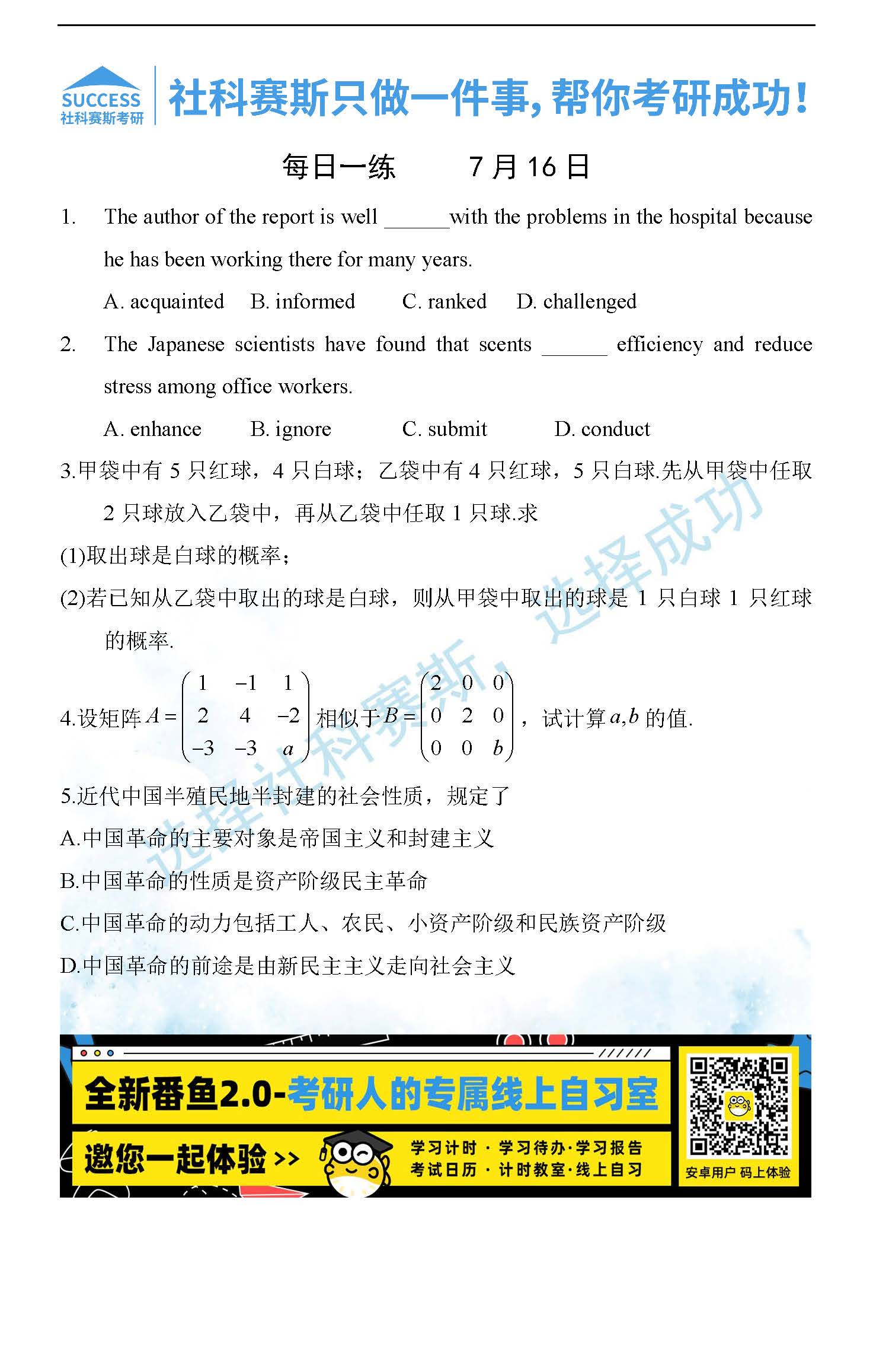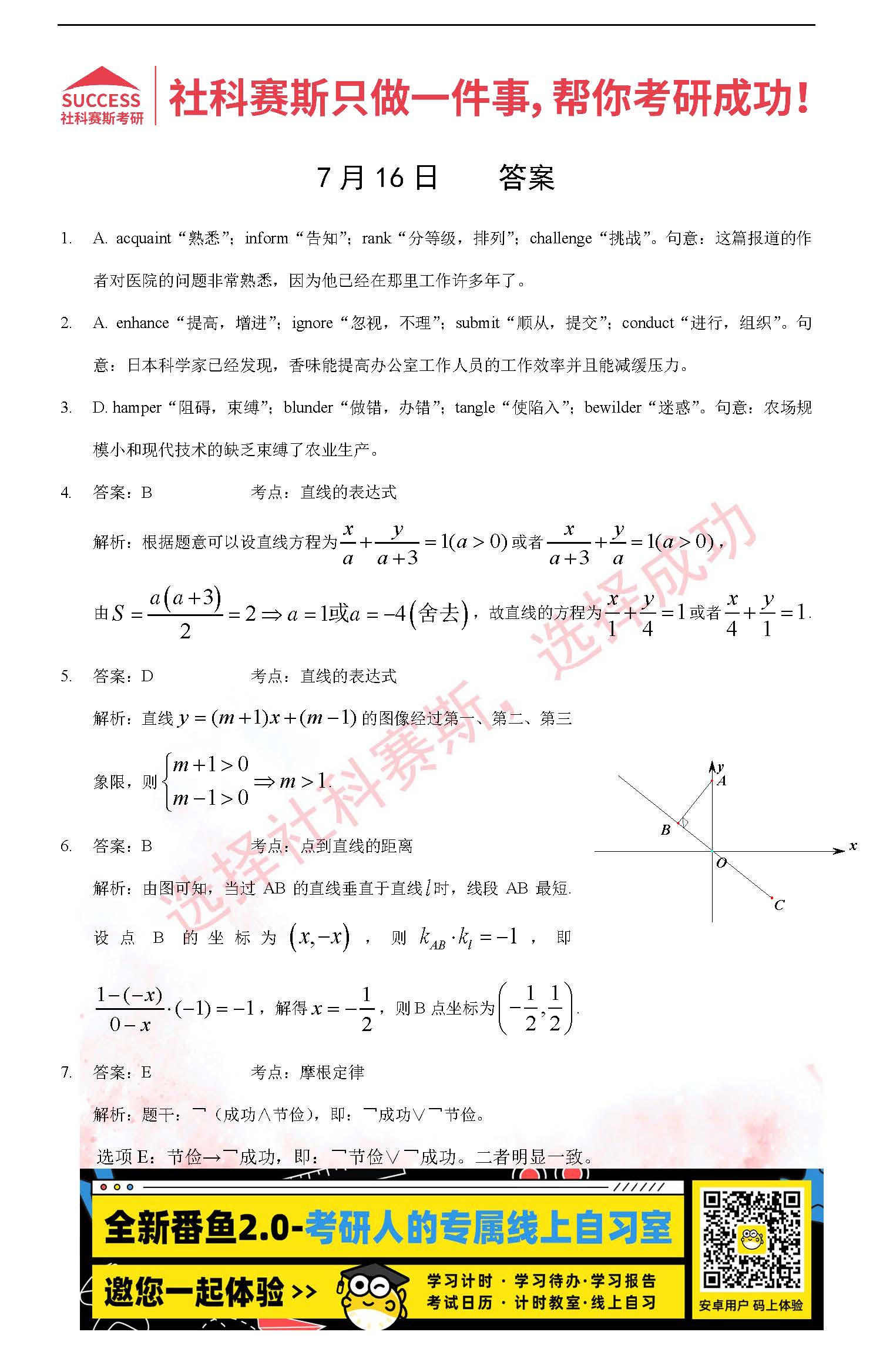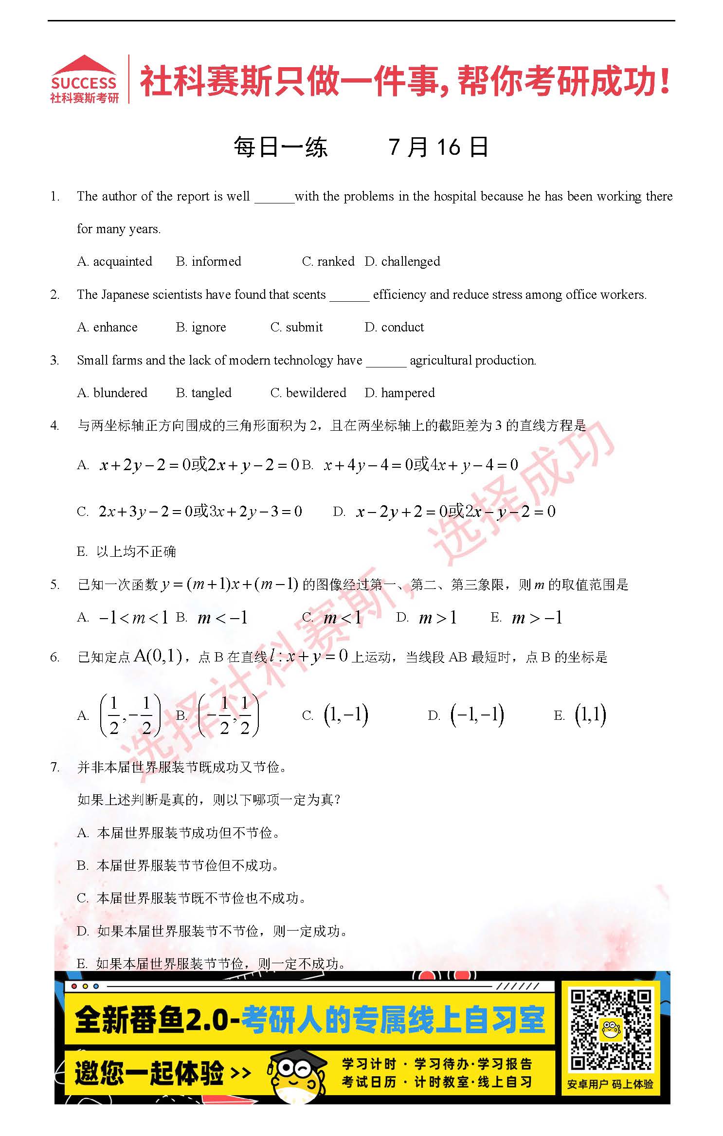 導讀:考研是一場持久戰,保持良好的學習習慣,是能確保復習高效的關鍵。今天社科賽斯MBA備考網小編整理了“2022管理類聯考7月16日每日一練及答案”的內容,希望能對廣大考生有所幫助。