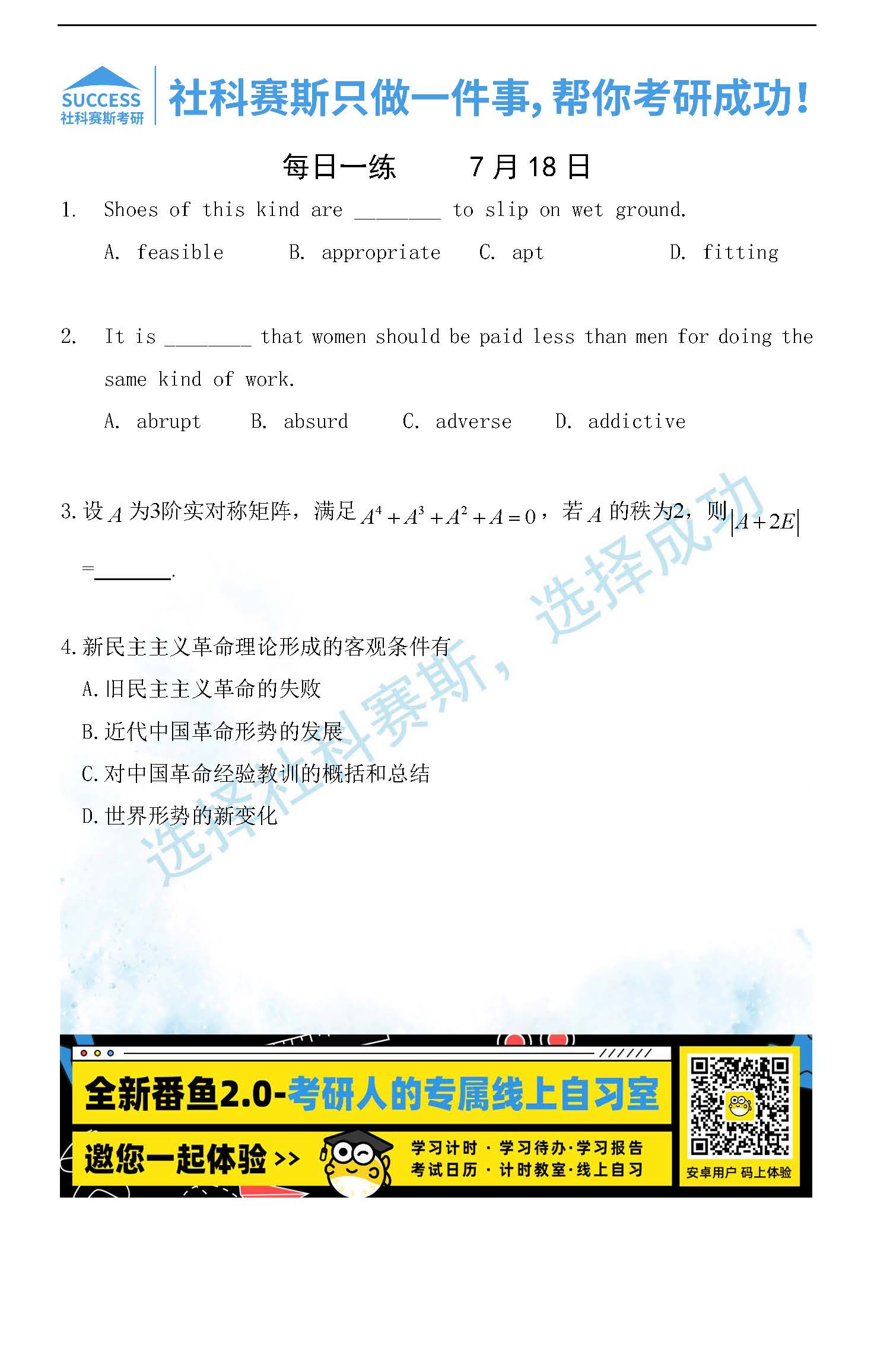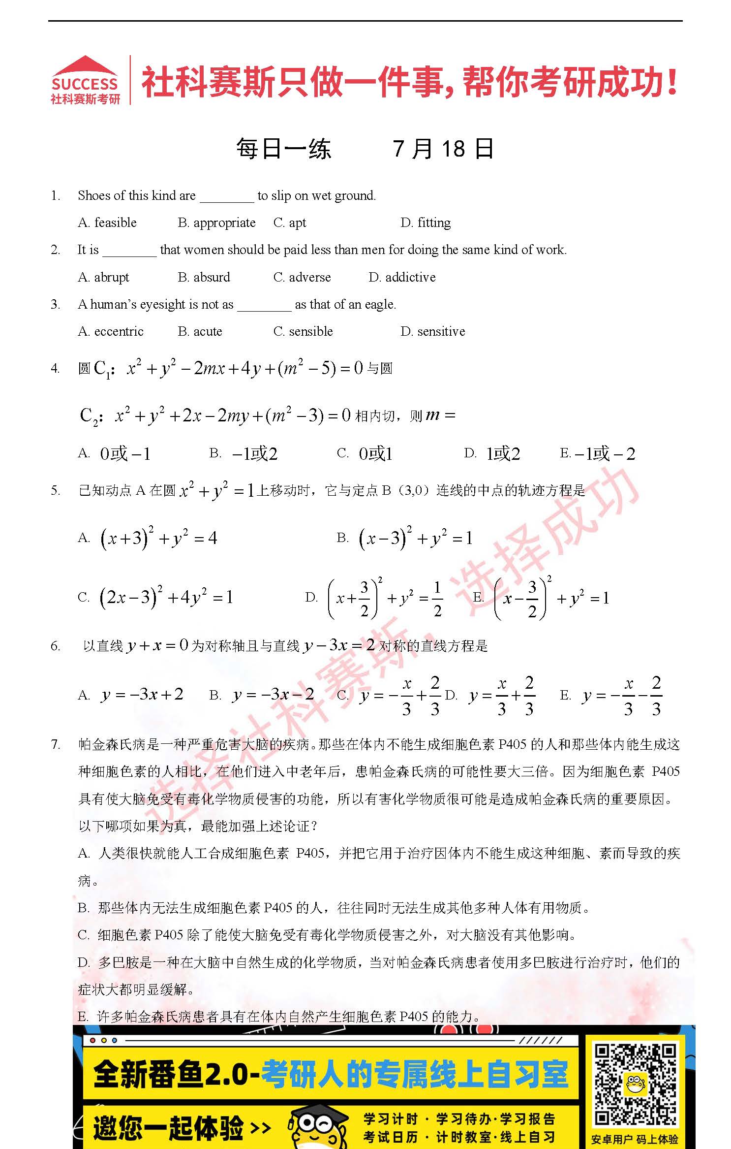 導讀:考研是一場持久戰,保持良好的學習習慣,是能確保復習高效的關鍵。今天社科賽斯MBA備考網小編整理了“2022管理類聯考7月18日每日一練及答案”的內容,希望能對廣大考生有所幫助。