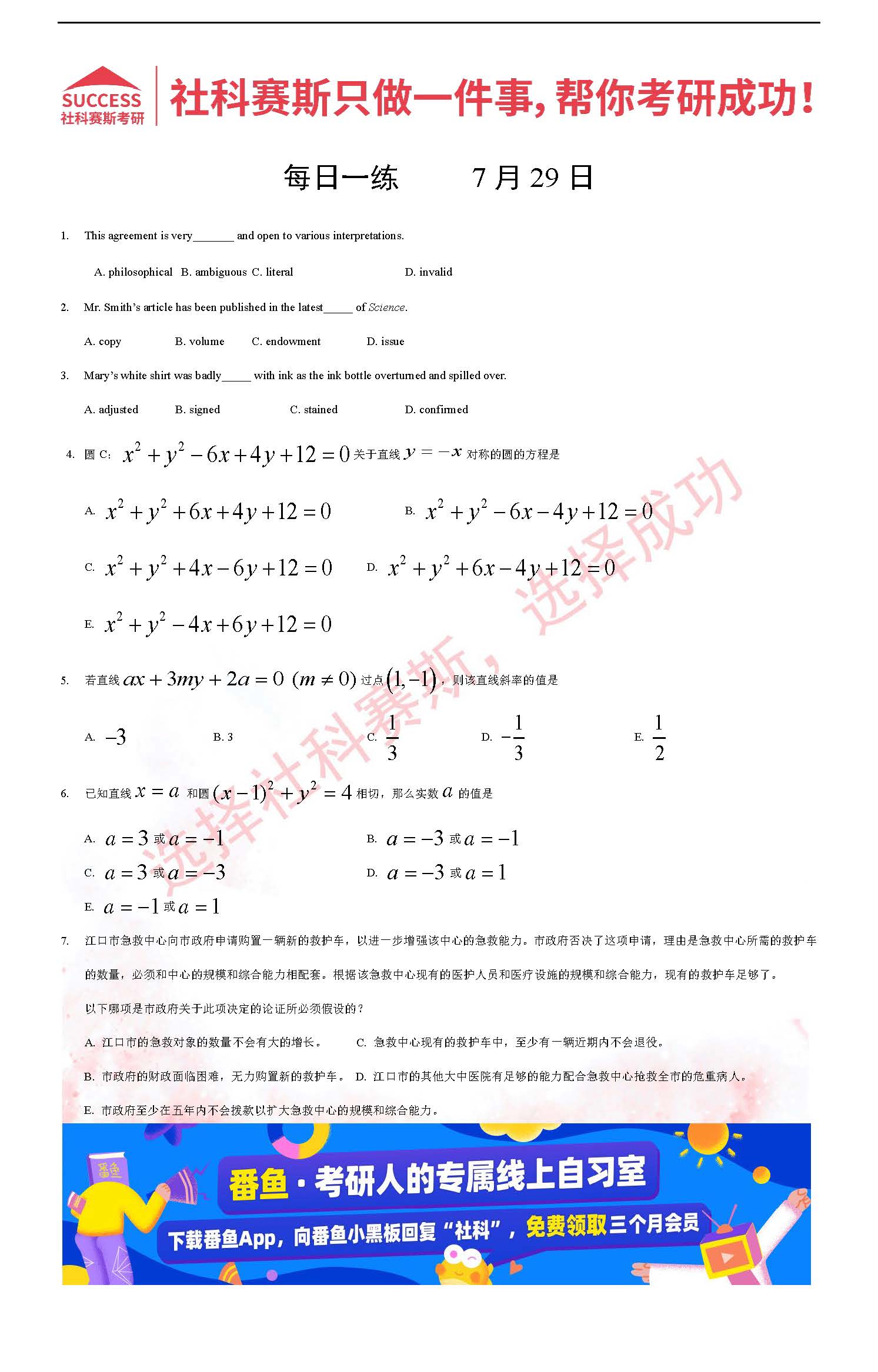 首頁> 管理類聯(lián)考每日一練 > 2022管理類聯(lián)考7月29日每日一練及答案