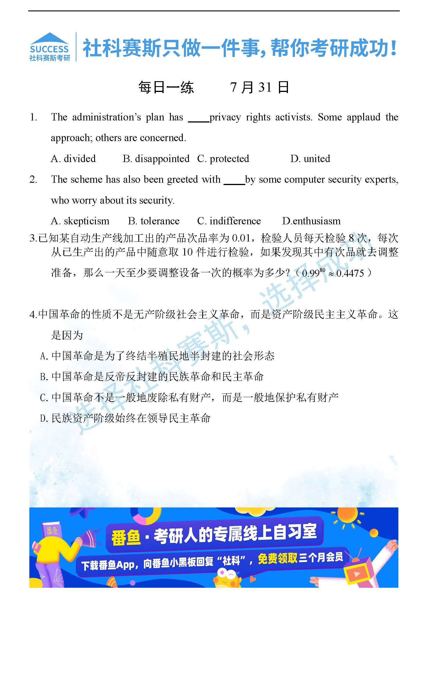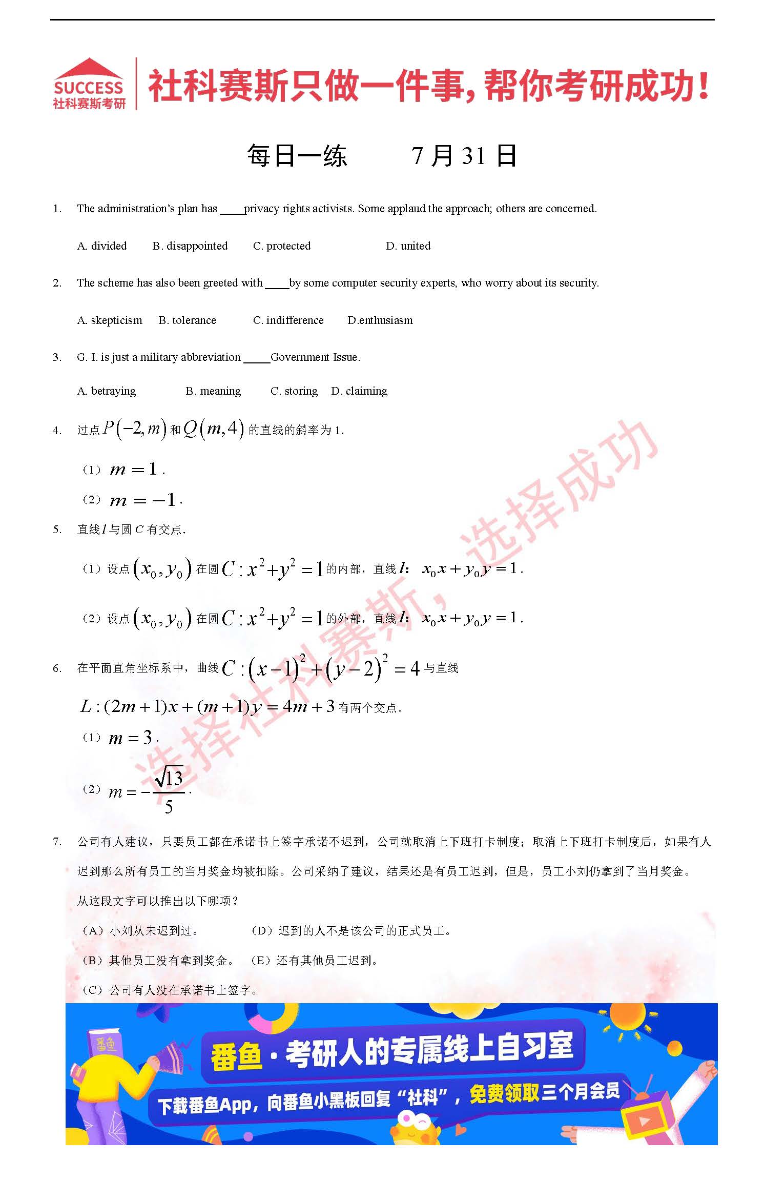 導讀:考研是一場持久戰,保持良好的學習習慣,是能確保復習高效的關鍵。今天社科賽斯MBA備考網小編整理了“2022管理類聯考7月31日每日一練及答案”的內容,希望能對廣大考生有所幫助。