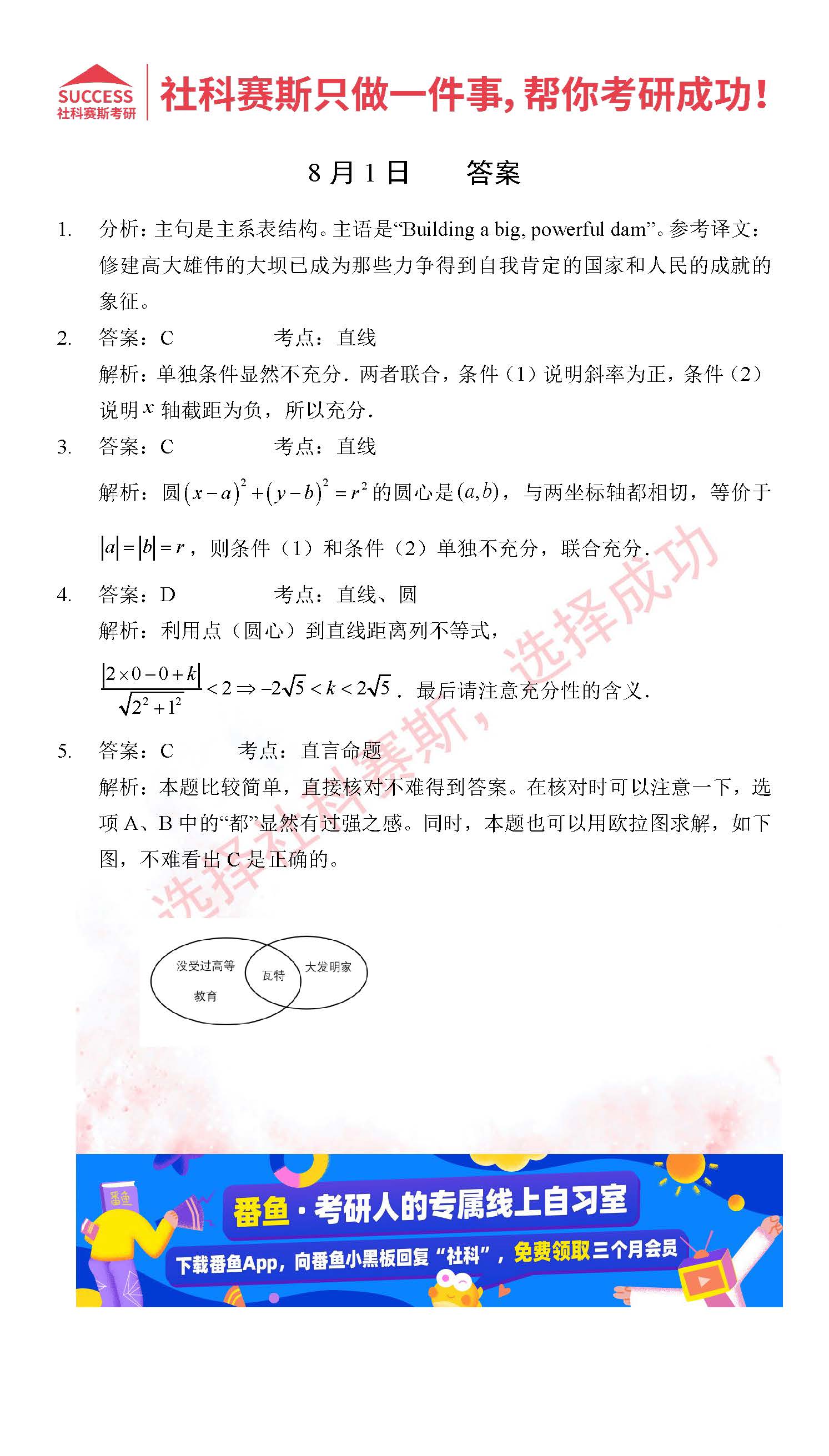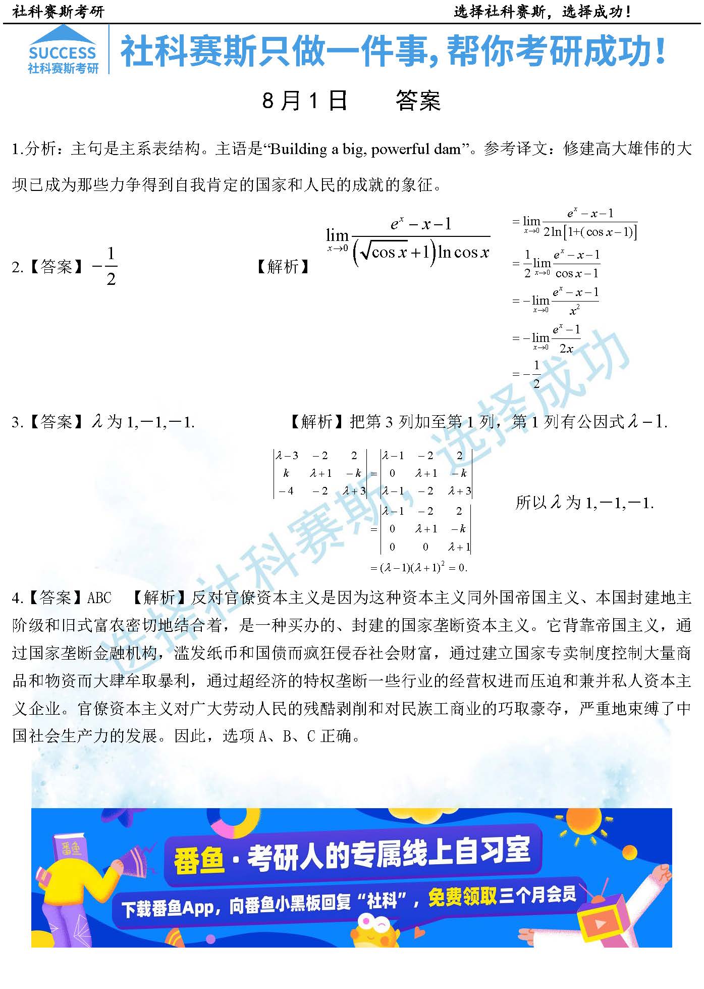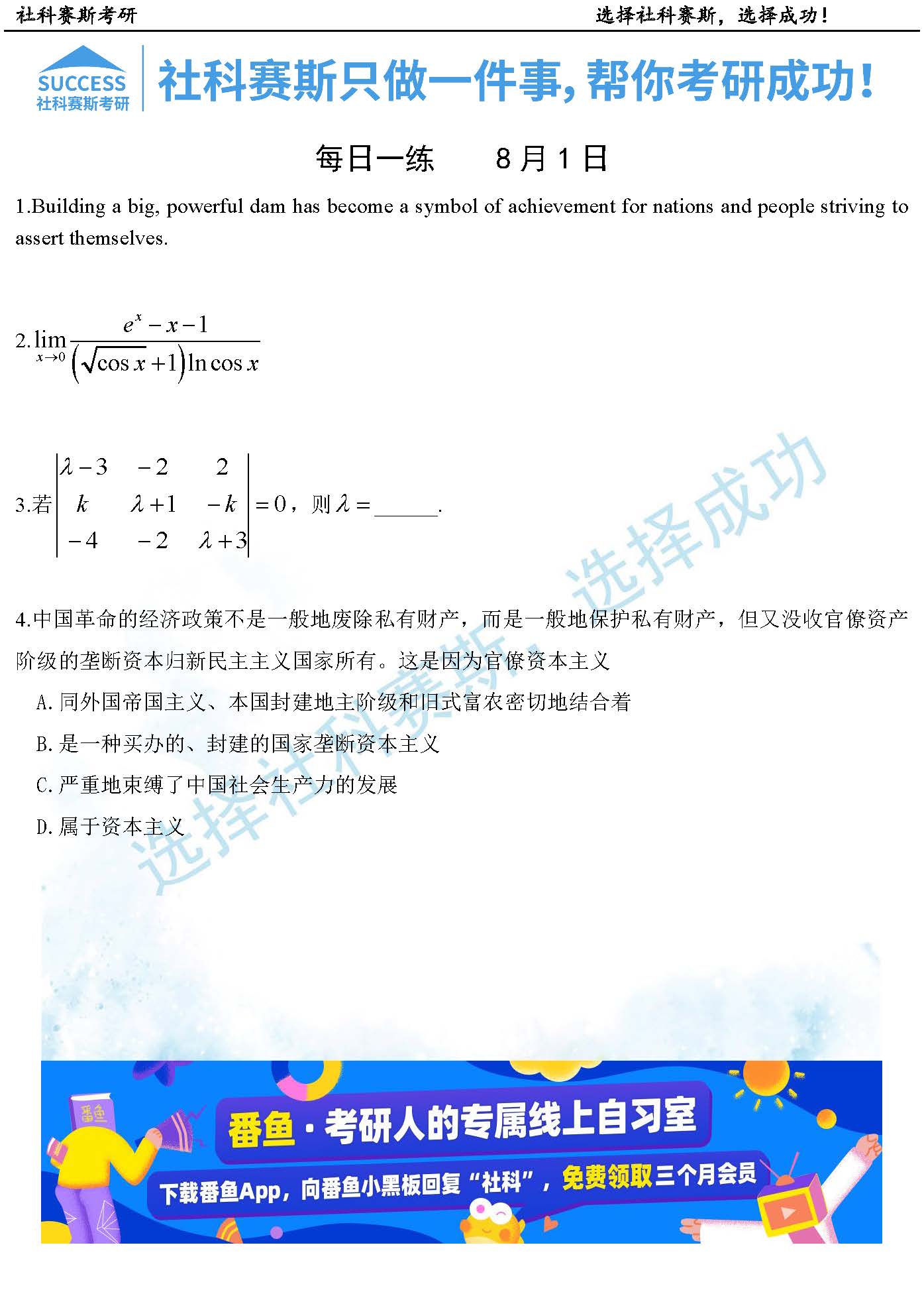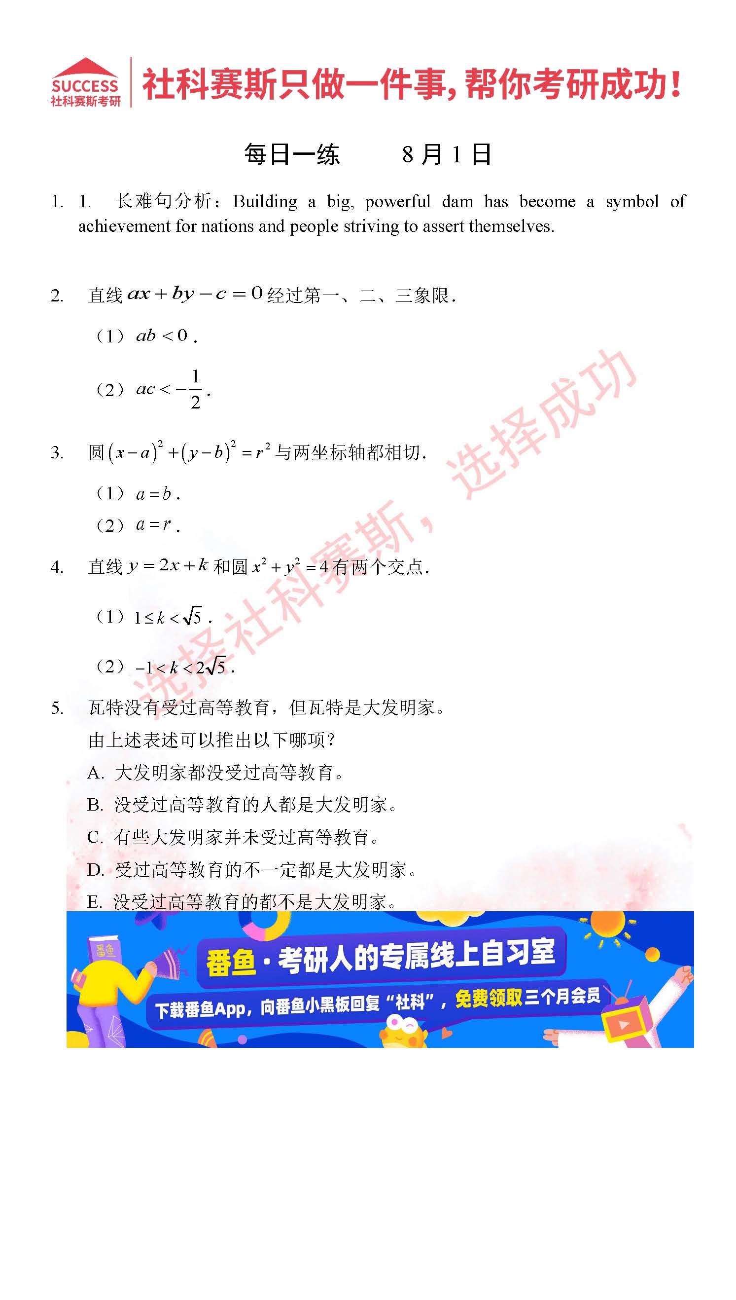 導(dǎo)讀:考研是一場(chǎng)持久戰(zhàn),保持良好的學(xué)習(xí)習(xí)慣,是能確保復(fù)習(xí)高效的關(guān)鍵。今天社科賽斯MBA備考網(wǎng)小編整理了“2022管理類聯(lián)考8月1日每日一練及答案”的內(nèi)容,希望能對(duì)廣大考生有所幫助。