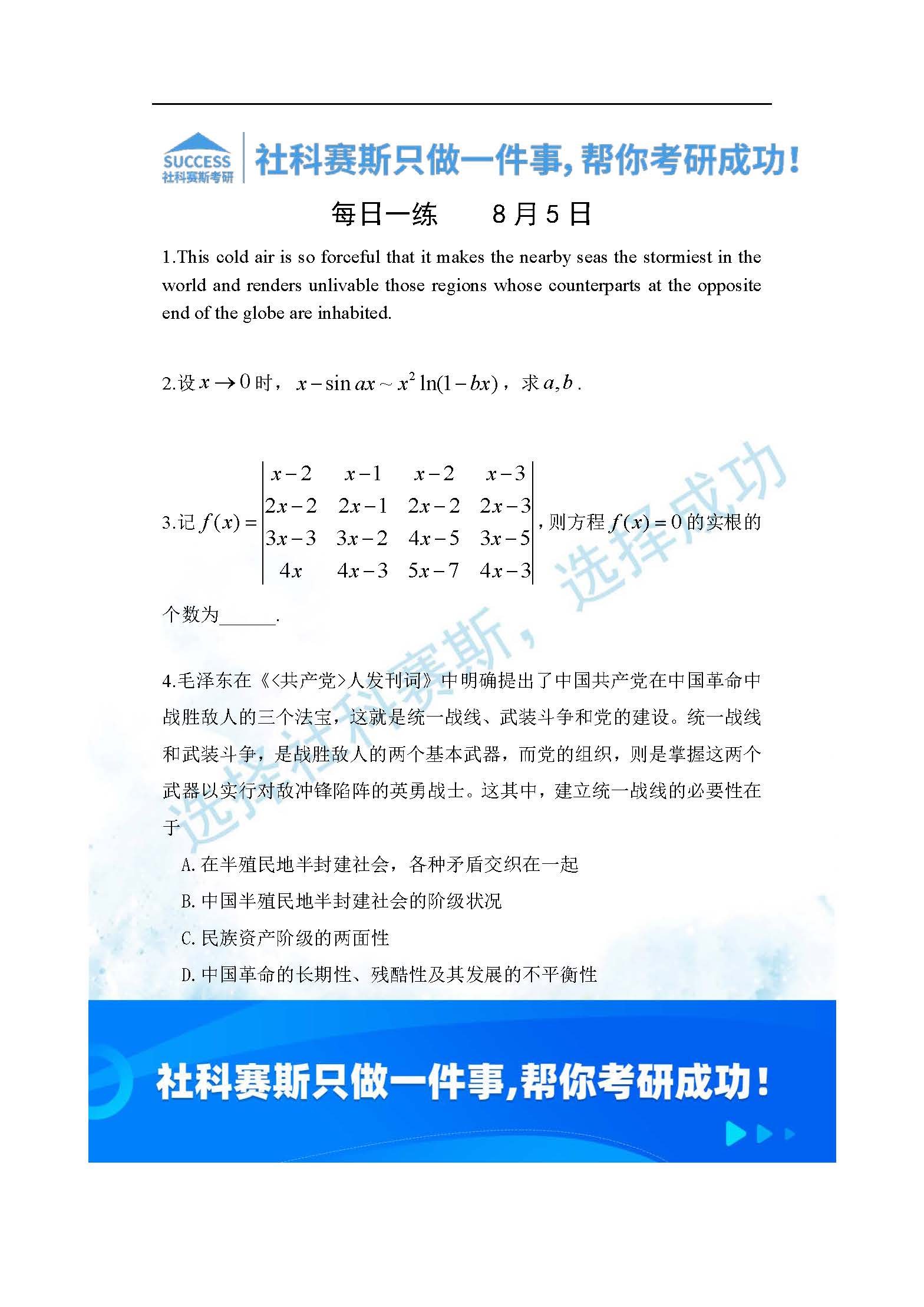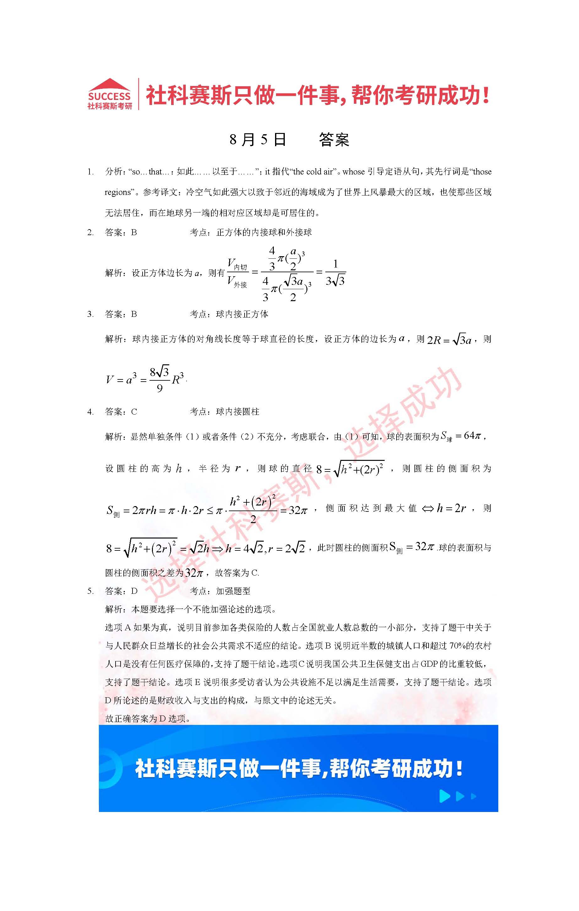 以上就是社科賽斯MBA備考網小編為大家整理2022管理類聯考8月5日每日一練及答案的全部內容,希望各位考生堅持利用起來,更多每日一練內容請持續關注MBA備考網管理類聯考每日一練。