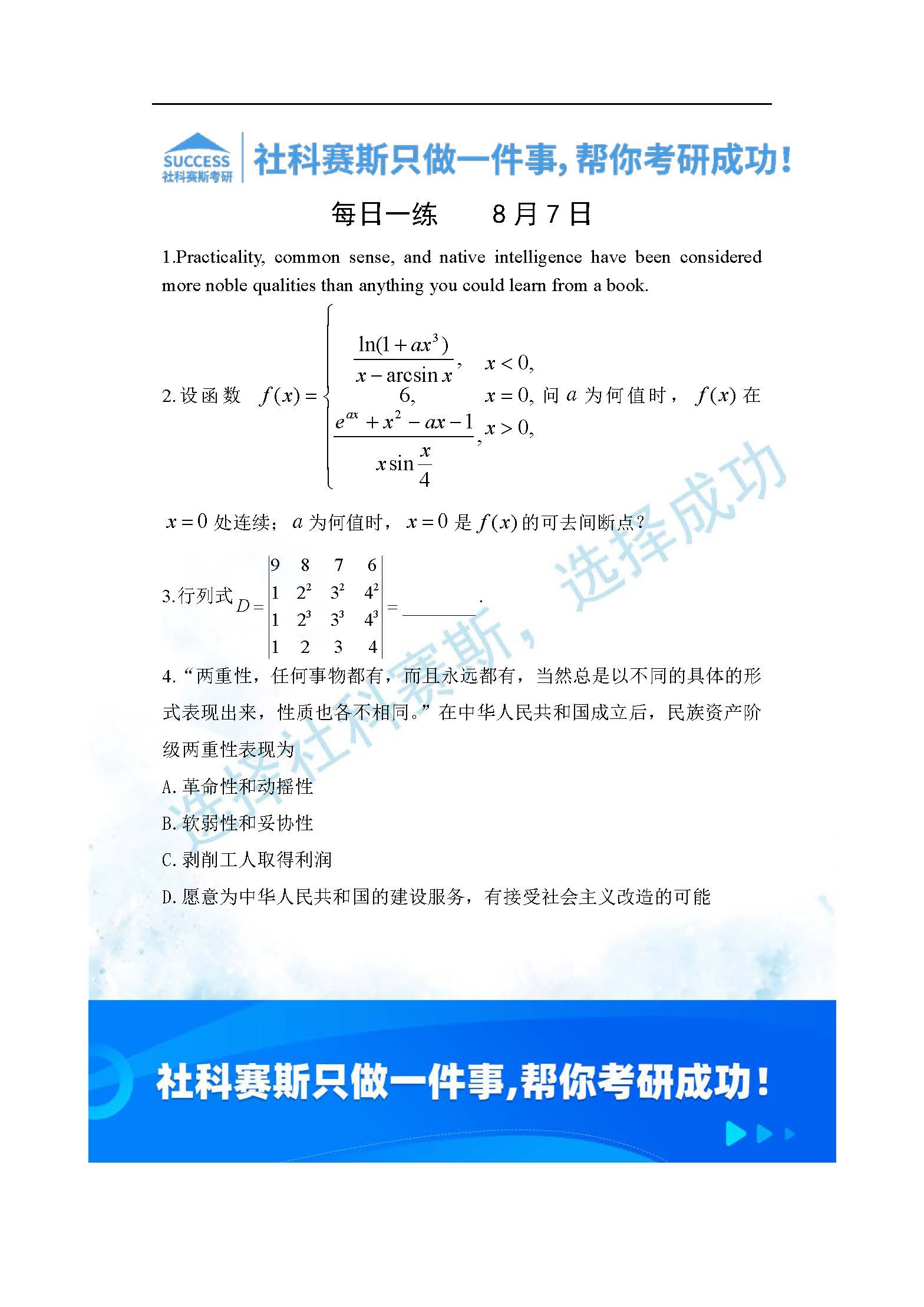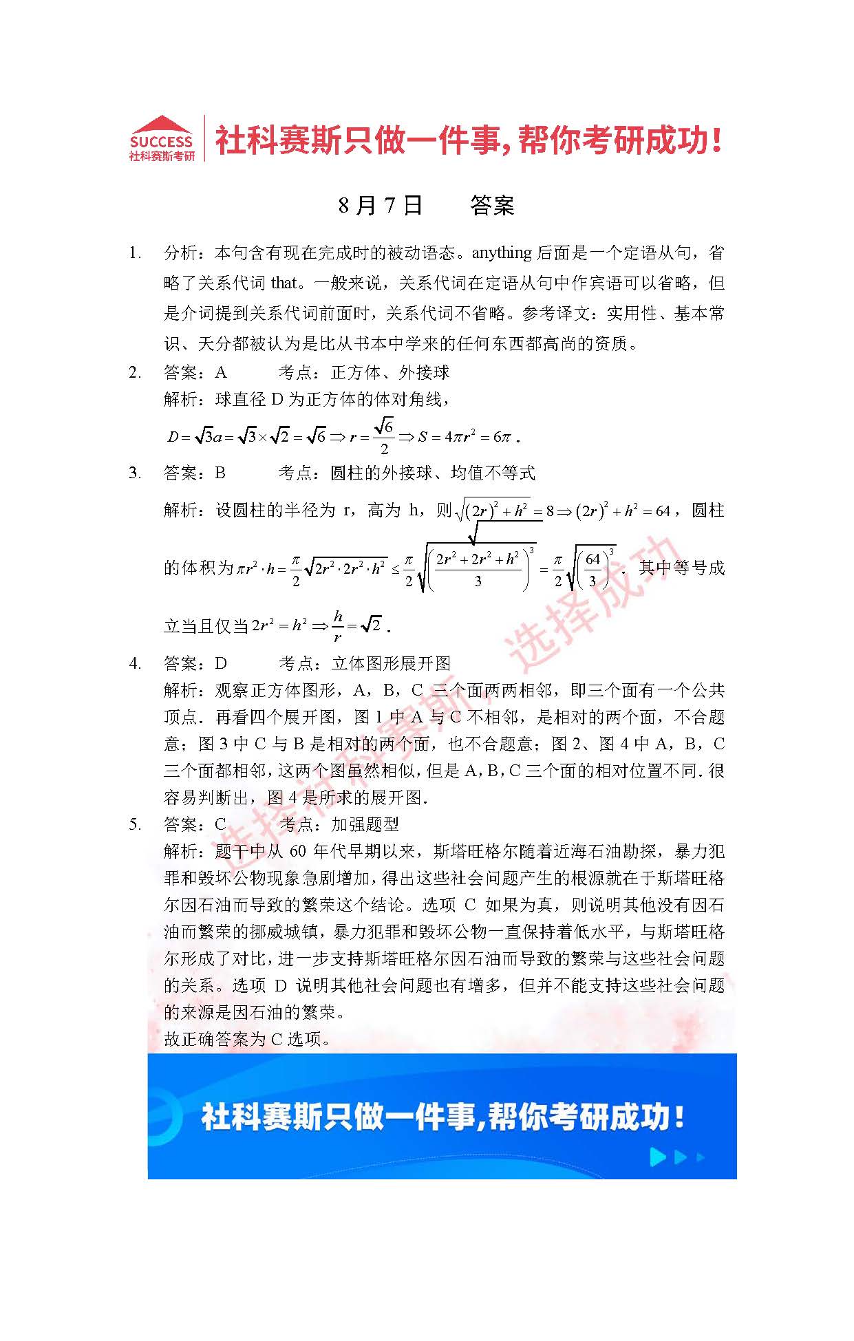 以上就是社科賽斯MBA備考網小編為大家整理2022管理類聯(lián)考8月7日每日一練及答案的全部內容,希望各位考生堅持利用起來,更多每日一練內容請持續(xù)關注MBA備考網管理類聯(lián)考每日一練。
