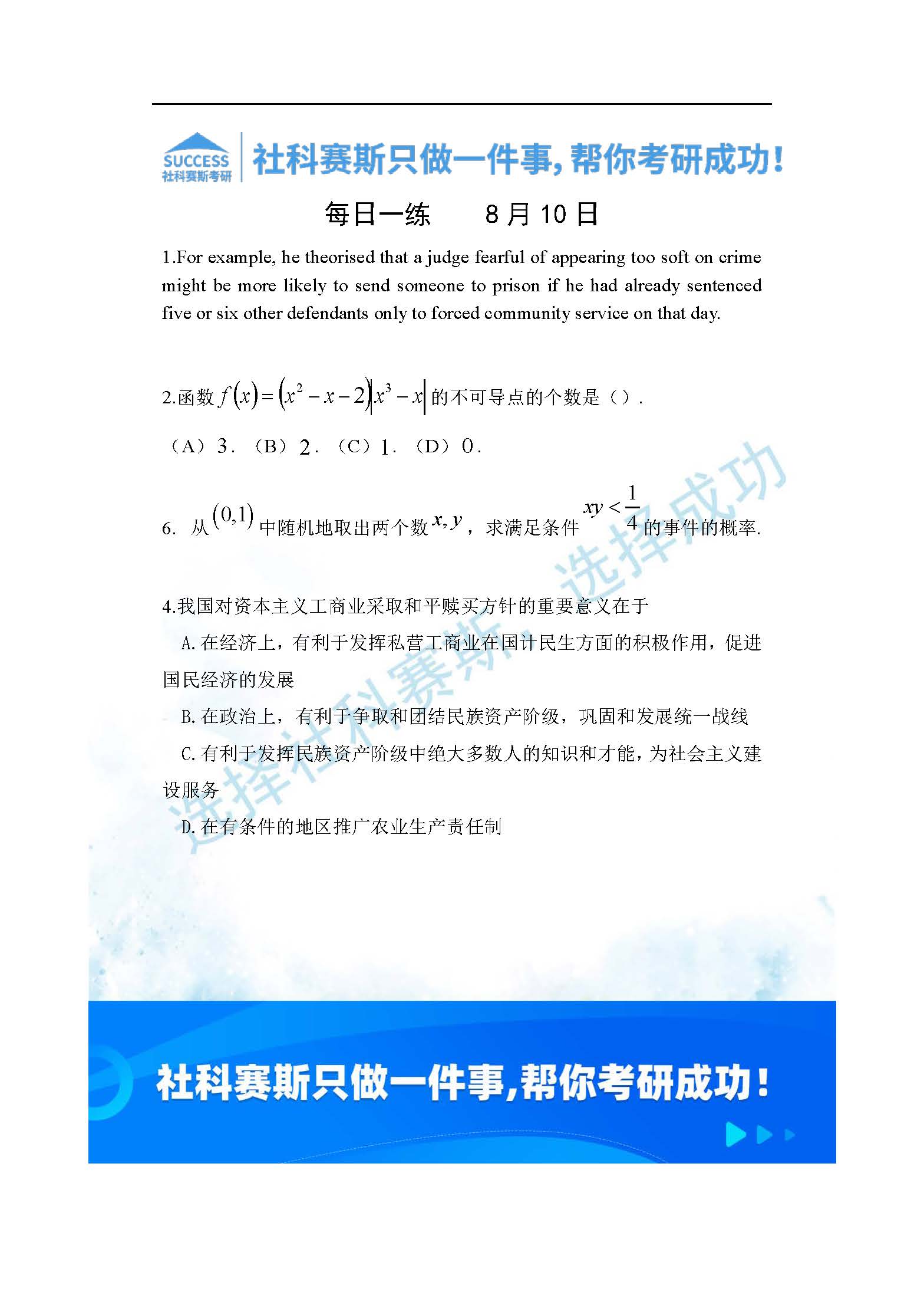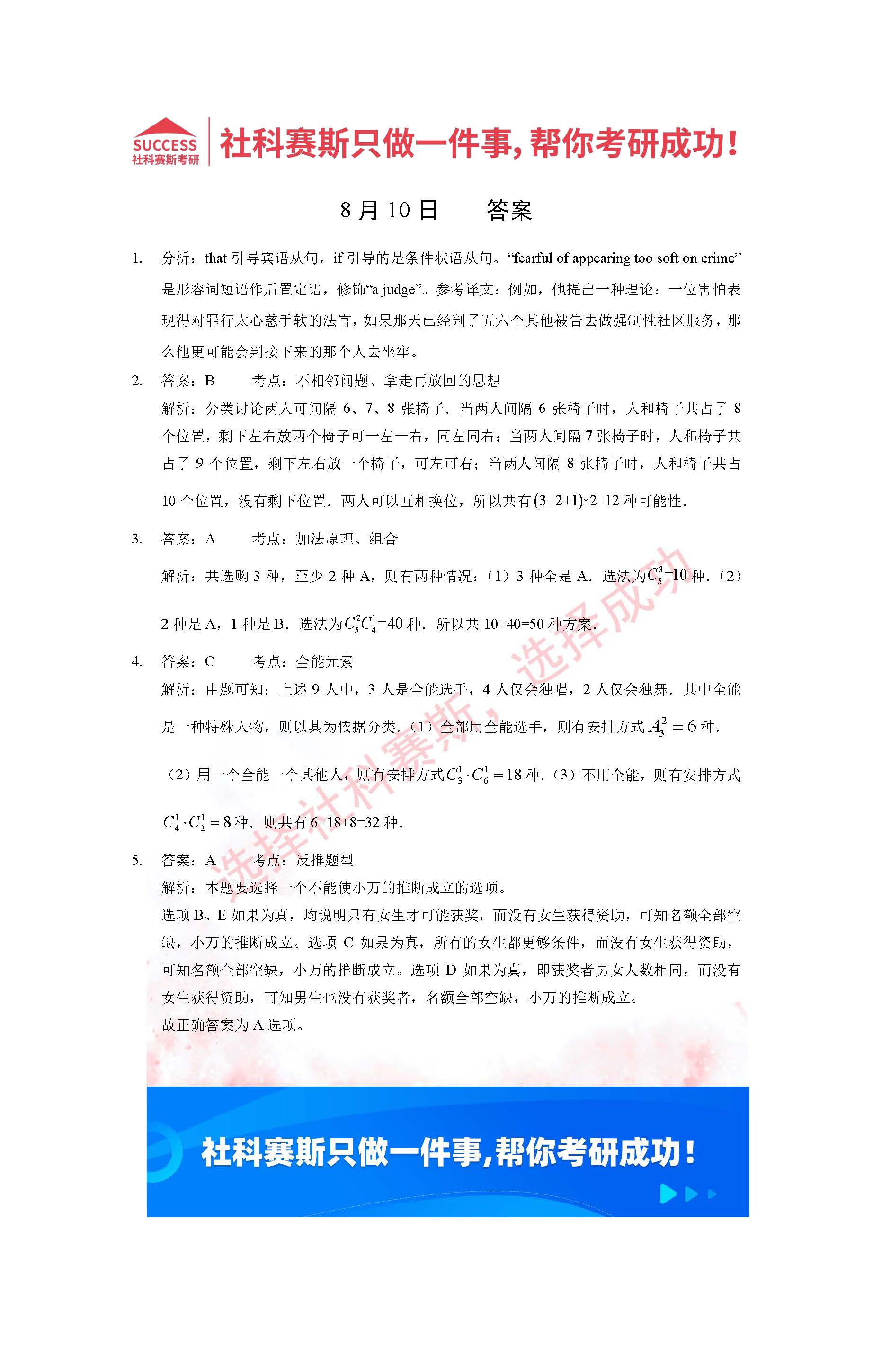 以上就是社科賽斯MBA備考網小編為大家整理2022管理類聯考8月10日每日一練及答案的全部內容,希望各位考生堅持利用起來,更多每日一練內容請持續關注MBA備考網管理類聯考每日一練。