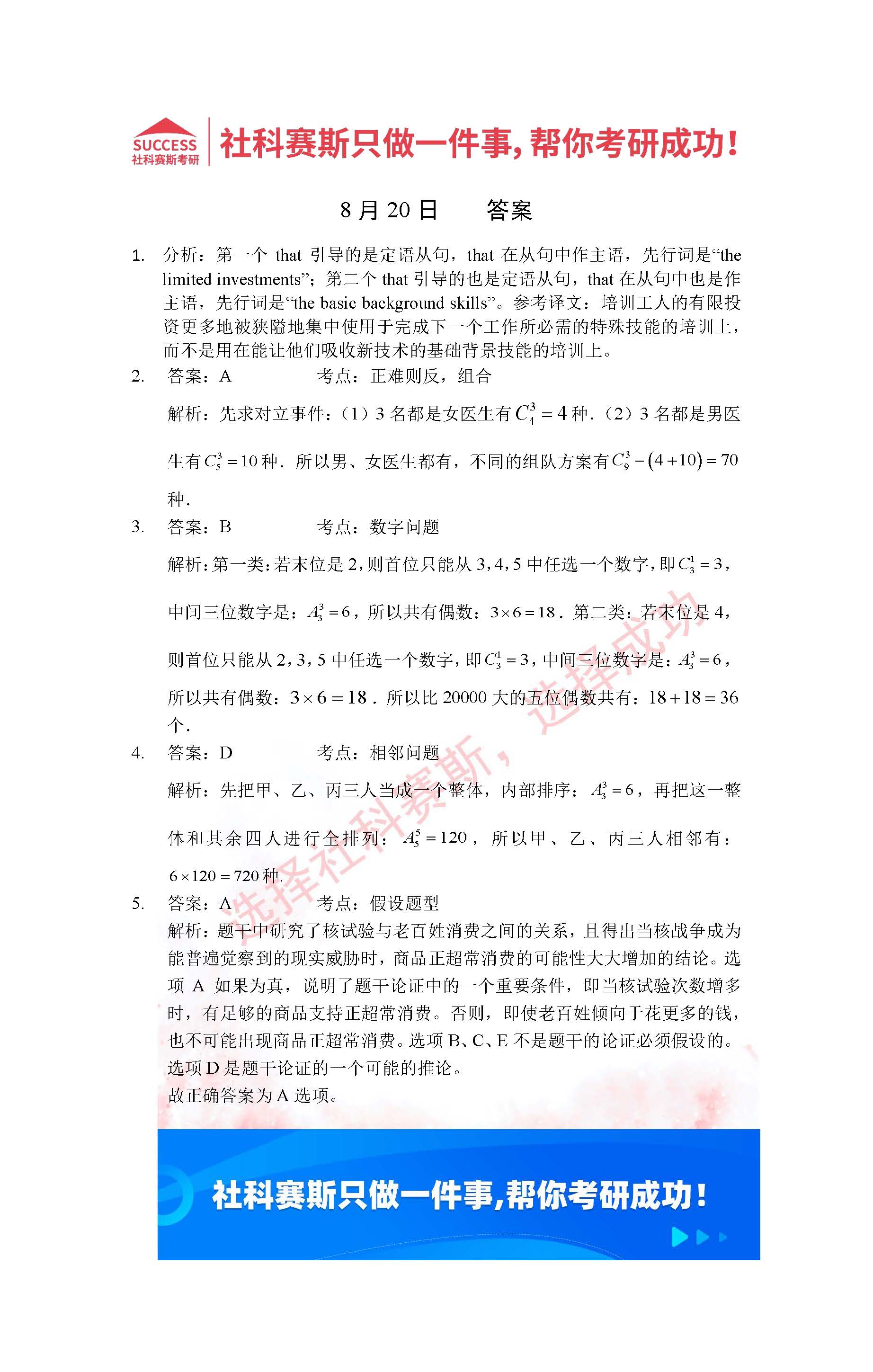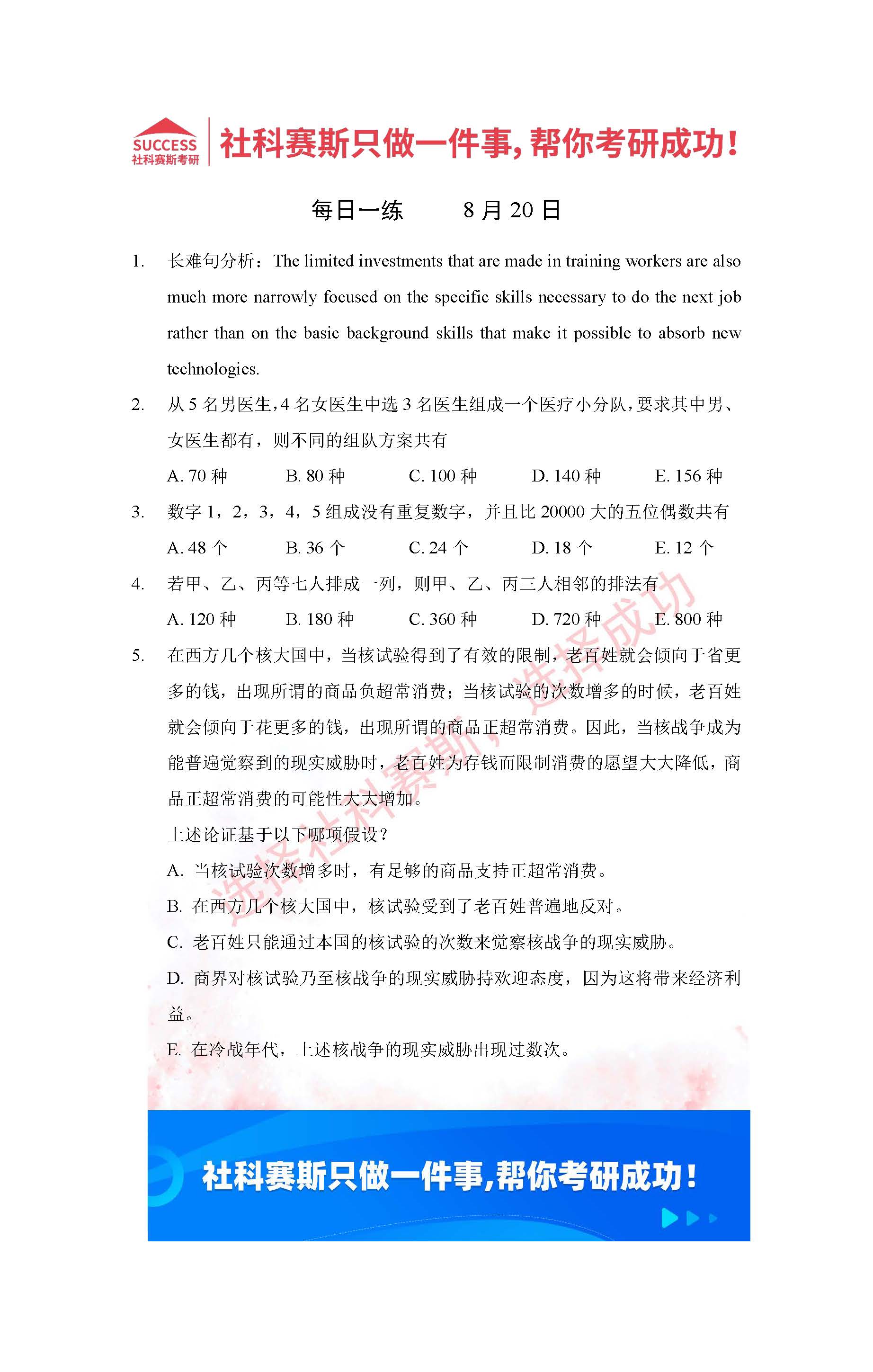 導讀:考研是一場持久戰,保持良好的學習習慣,是能確保復習高效的關鍵。今天社科賽斯MBA備考網小編整理了“2022管理類聯考8月20日每日一練及答案”的內容,希望能對廣大考生有所幫助。