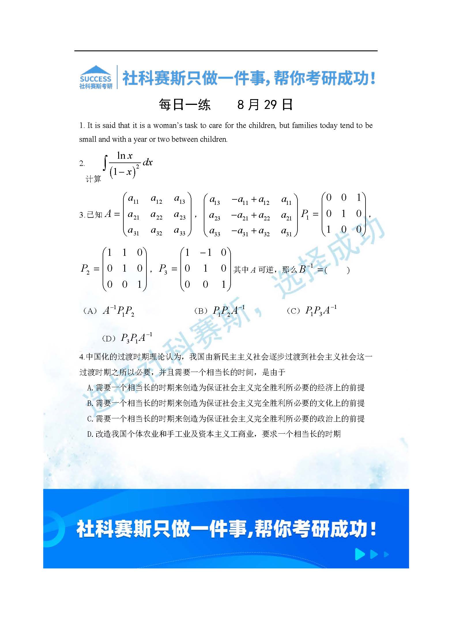 【版權(quán)與免責聲明】 如發(fā)現(xiàn)內(nèi)容存在版權(quán)問題,煩請?zhí)峁┫嚓P(guān)信息發(fā)郵件至service@mbaschool.com.cn,我們將及時溝通與處理。本站內(nèi)容除非來源注明社科賽斯,否則均為網(wǎng)絡(luò)轉(zhuǎn)載,涉及言論、版權(quán)與本站無關(guān)。