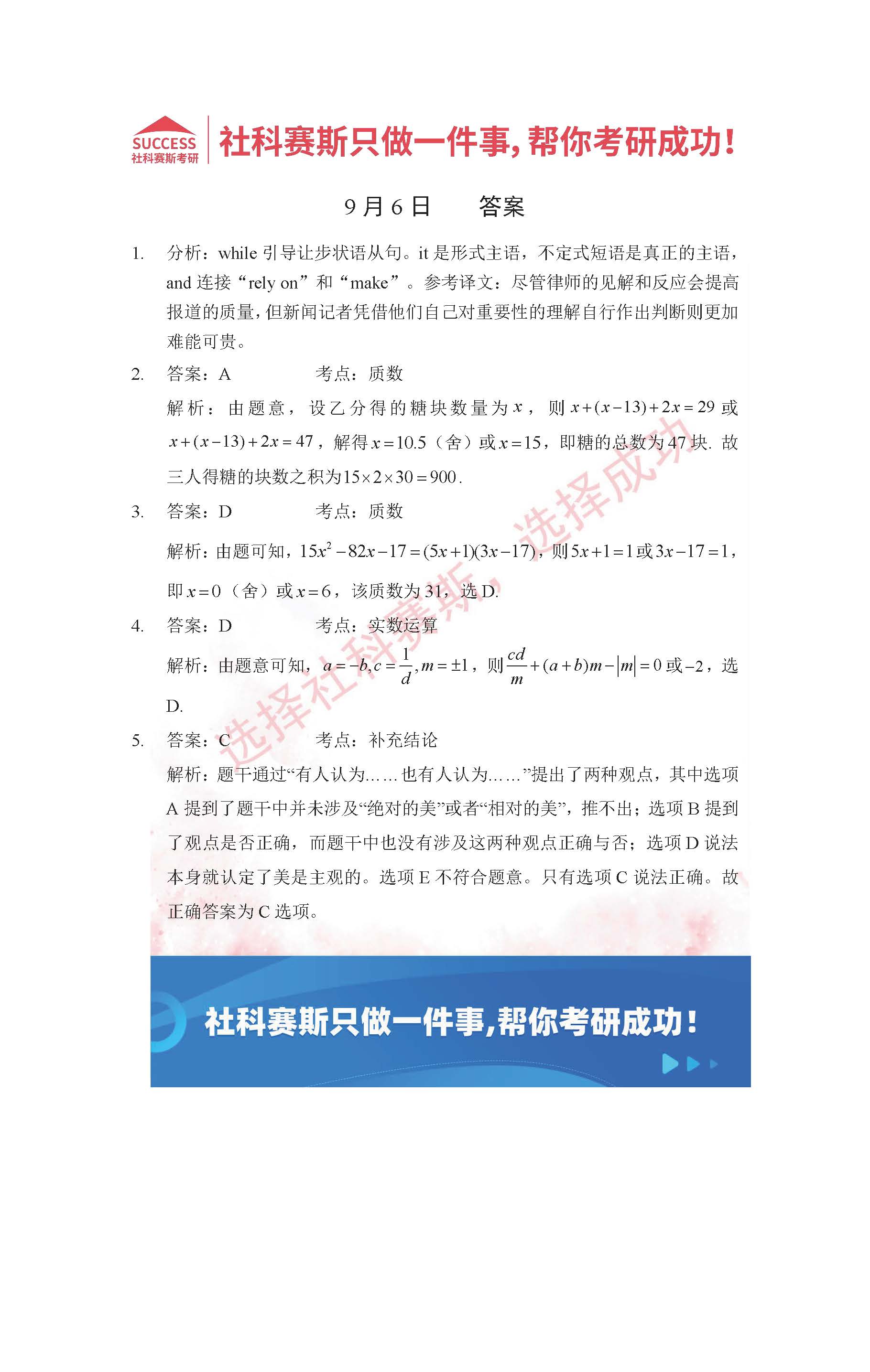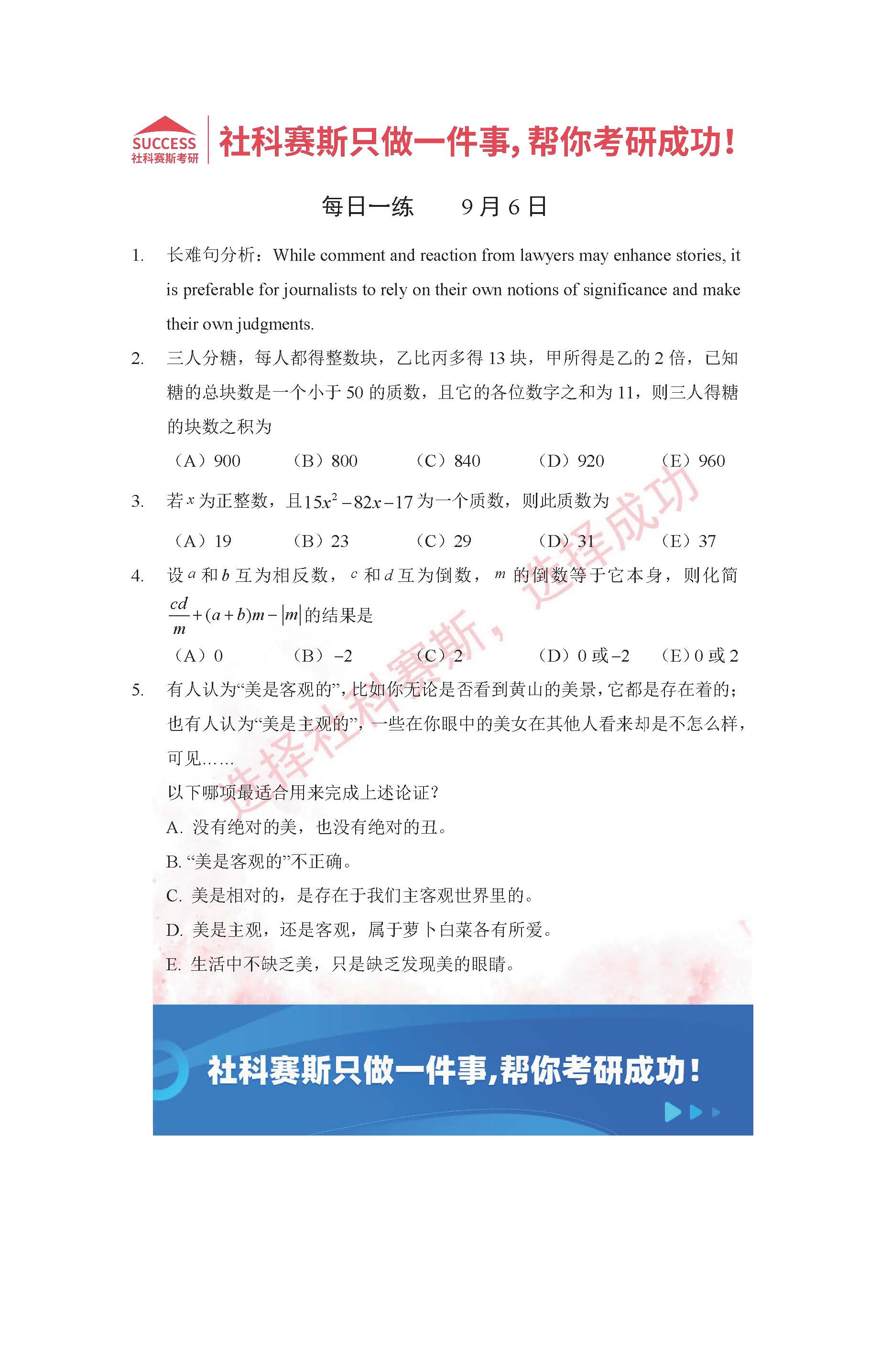 導讀:考研是一場持久戰,保持良好的學習習慣,是能確保復習高效的關鍵。今天社科賽斯MBA備考網小編整理了“2022管理類聯考9月6日每日一練及答案”的內容,希望能對廣大考生有所幫助。