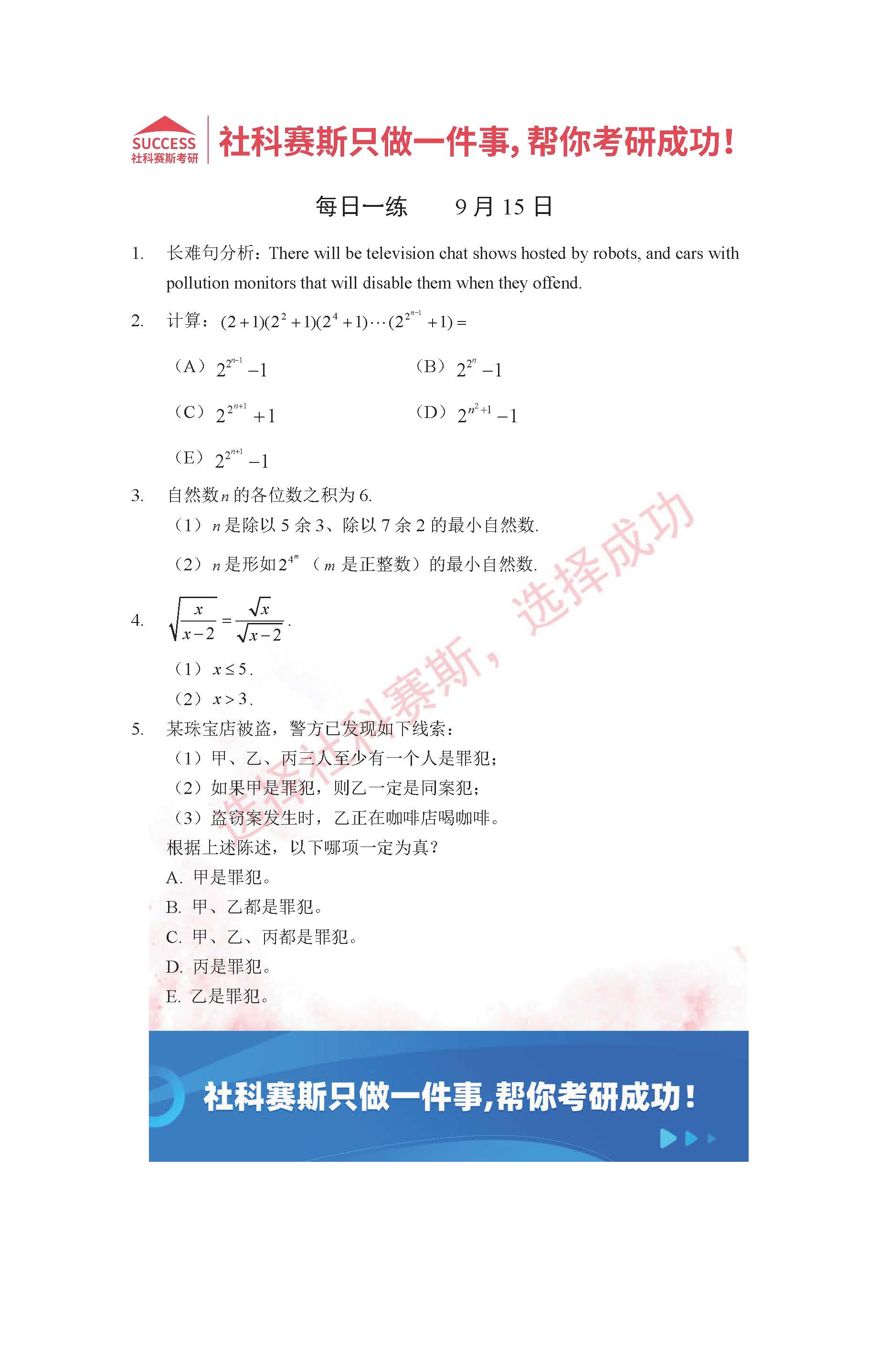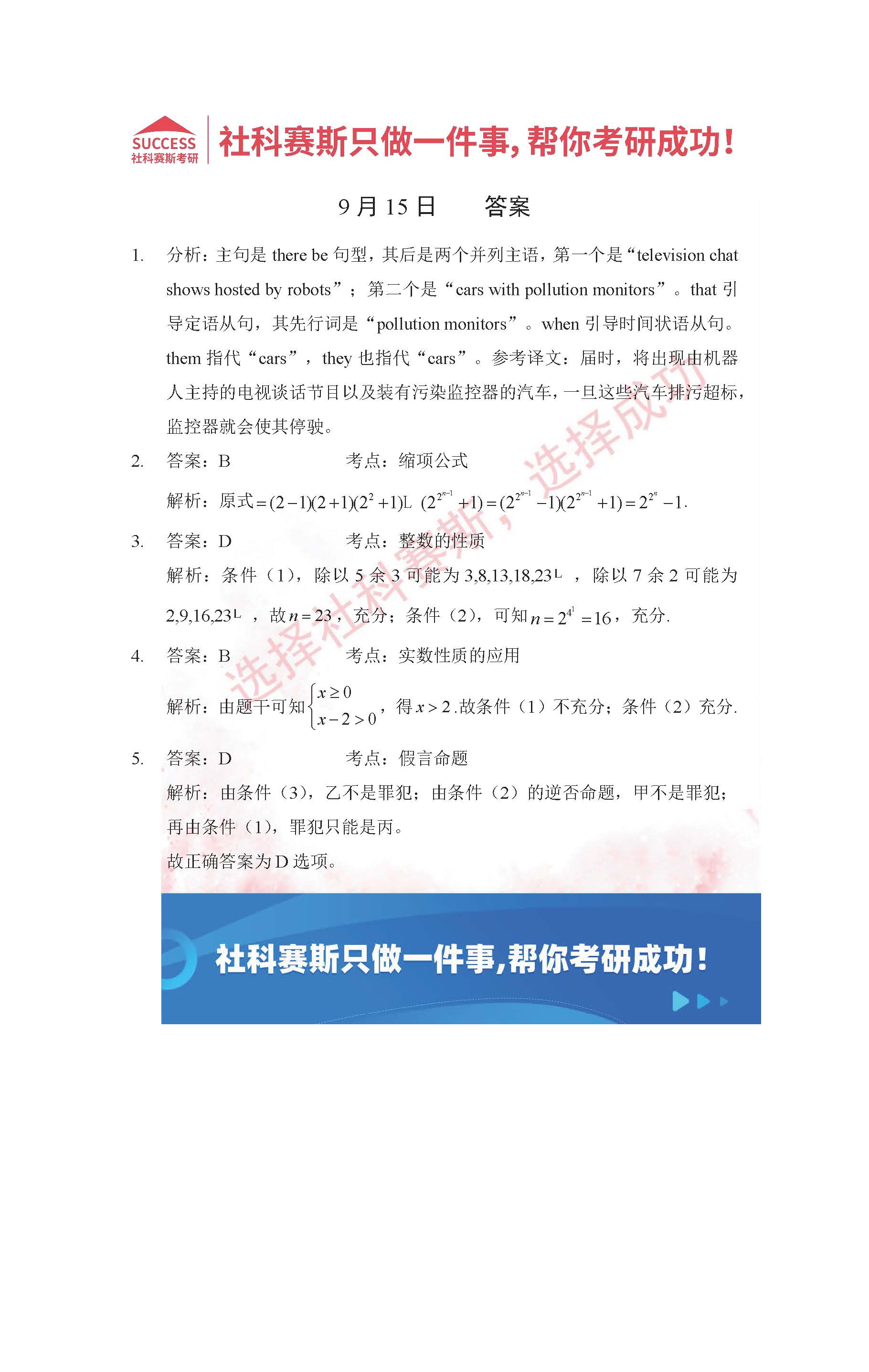 以上就是社科賽斯MBA備考網小編為大家整理2022管理類聯考9月15日每日一練及答案的全部內容,希望各位考生堅持利用起來,更多每日一練內容請持續關注MBA備考網管理類聯考每日一練。