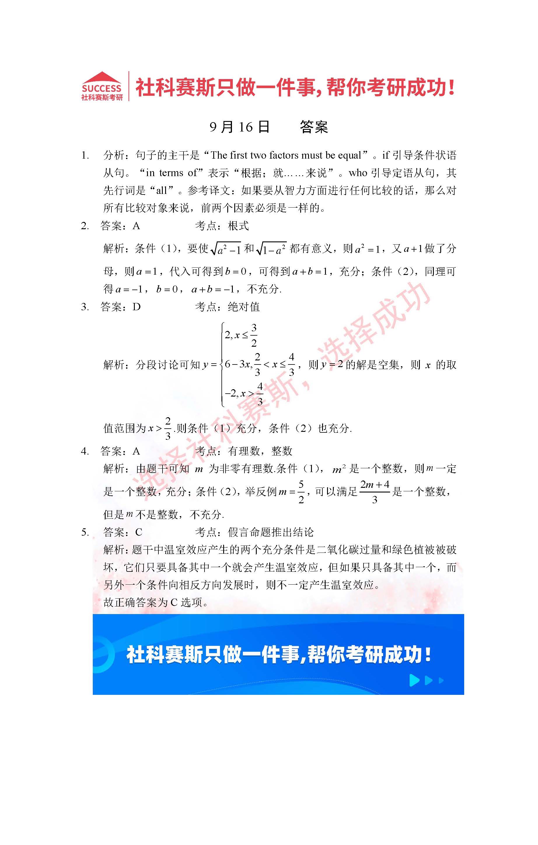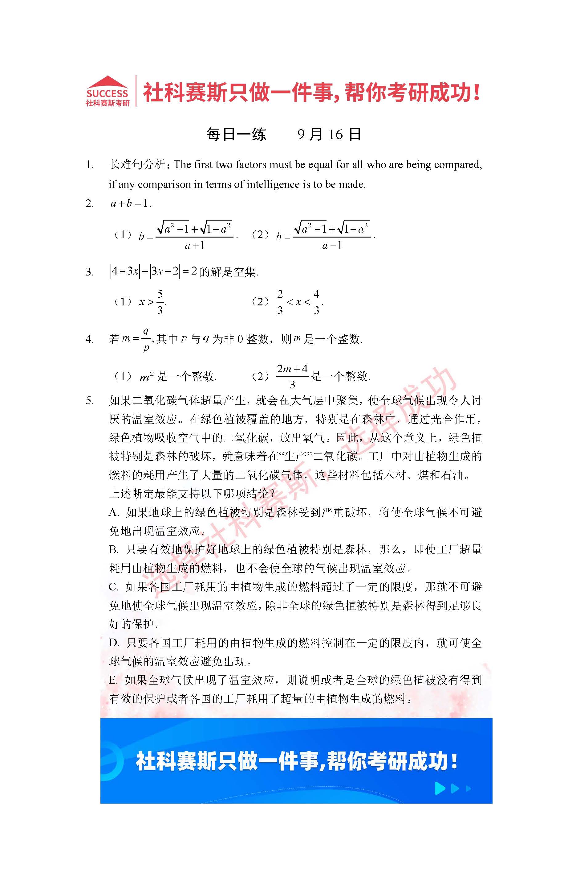 導讀:考研是一場持久戰,保持良好的學習習慣,是能確保復習高效的關鍵。今天社科賽斯MBA備考網小編整理了“2022管理類聯考9月16日每日一練及答案”的內容,希望能對廣大考生有所幫助。