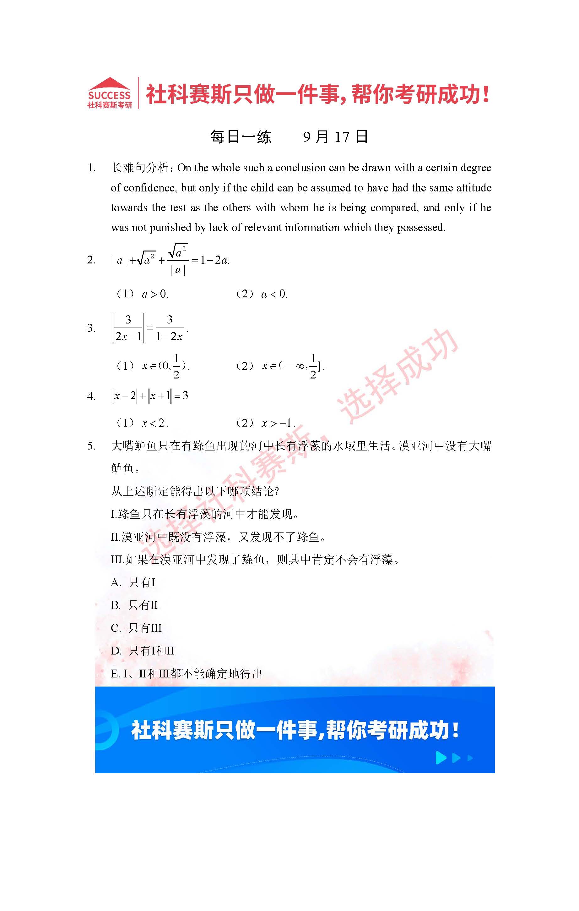 導讀:考研是一場持久戰,保持良好的學習習慣,是能確保復習高效的關鍵。今天社科賽斯MBA備考網小編整理了“2022管理類聯考9月17日每日一練及答案”的內容,希望能對廣大考生有所幫助。