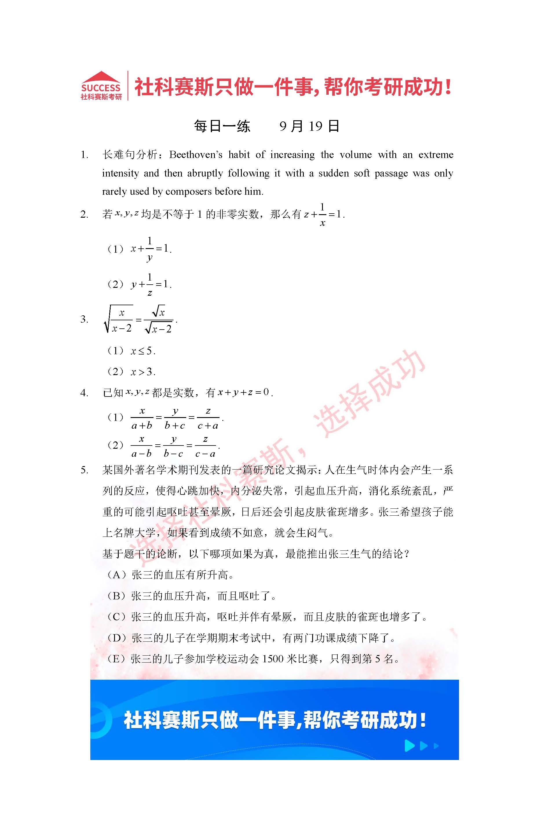 導讀:考研是一場持久戰(zhàn),保持良好的學習習慣,是能確保復習高效的關鍵。今天社科賽斯MBA備考網小編整理了“2022管理類聯(lián)考9月19日每日一練及答案”的內容,希望能對廣大考生有所幫助。