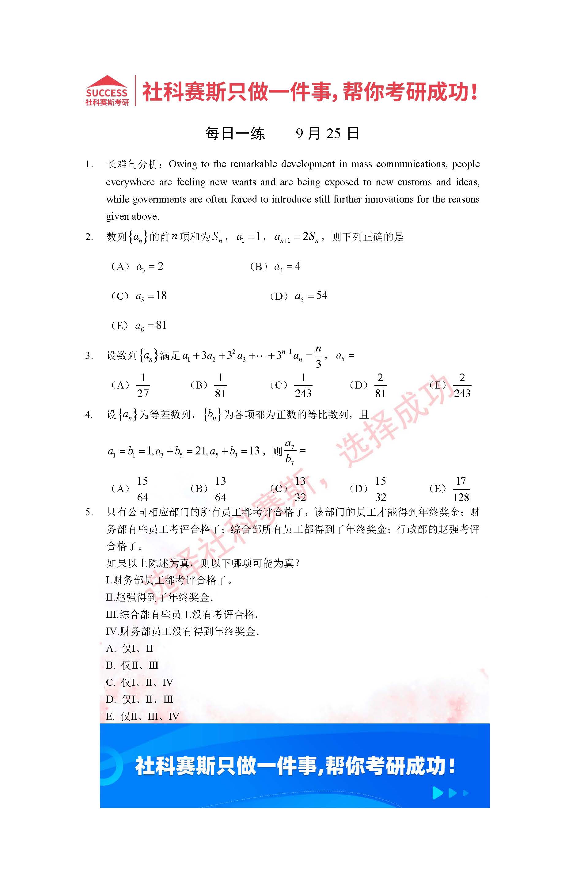 導讀:考研是一場持久戰,保持良好的學習習慣,是能確保復習高效的關鍵。今天社科賽斯MBA備考網小編整理了“2022管理類聯考9月25日每日一練及答案”的內容,希望能對廣大考生有所幫助。