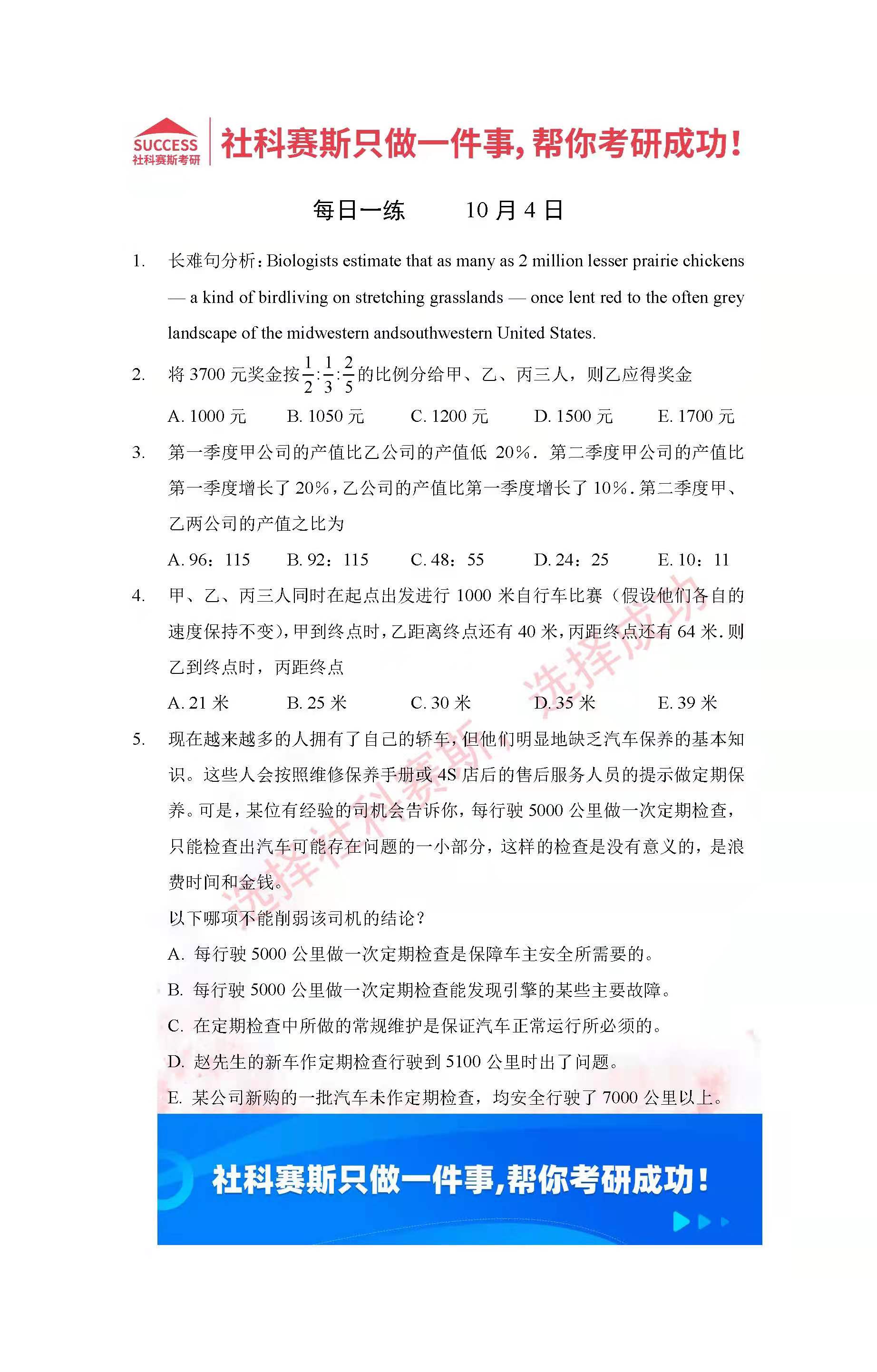 首頁> 管理類聯(lián)考每日一練 > 2022管理類聯(lián)考10月4日每日一練及答案