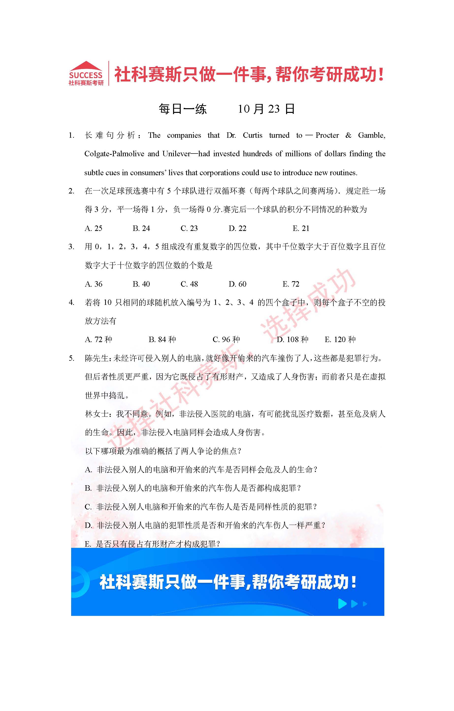 以上就是社科賽斯MBA備考網小編為大家整理2022管理類聯考10月23日每日一練及答案的全部內容,希望各位考生堅持利用起來,更多每日一練內容請持續關注MBA備考網管理類聯考每日一練。