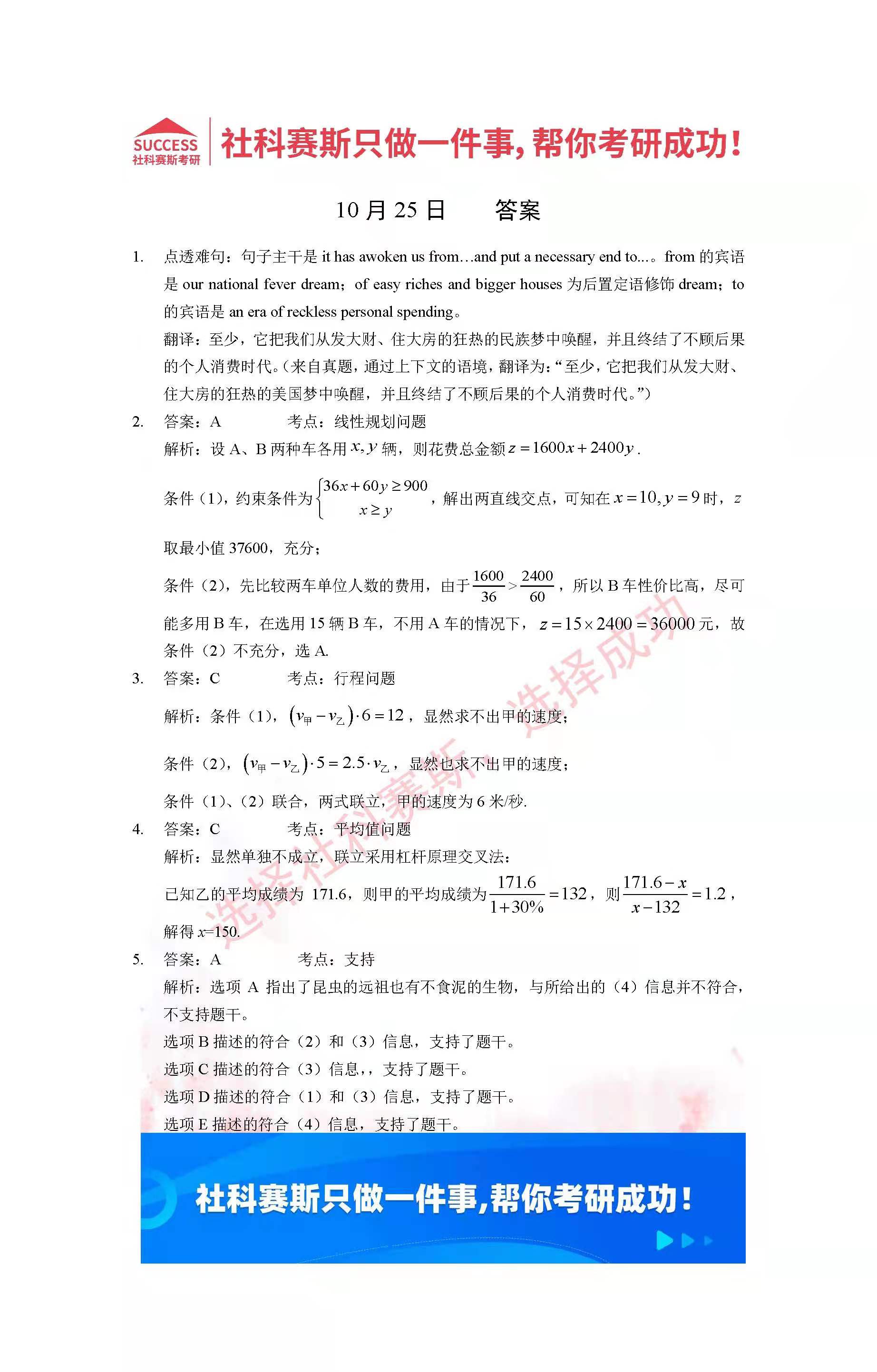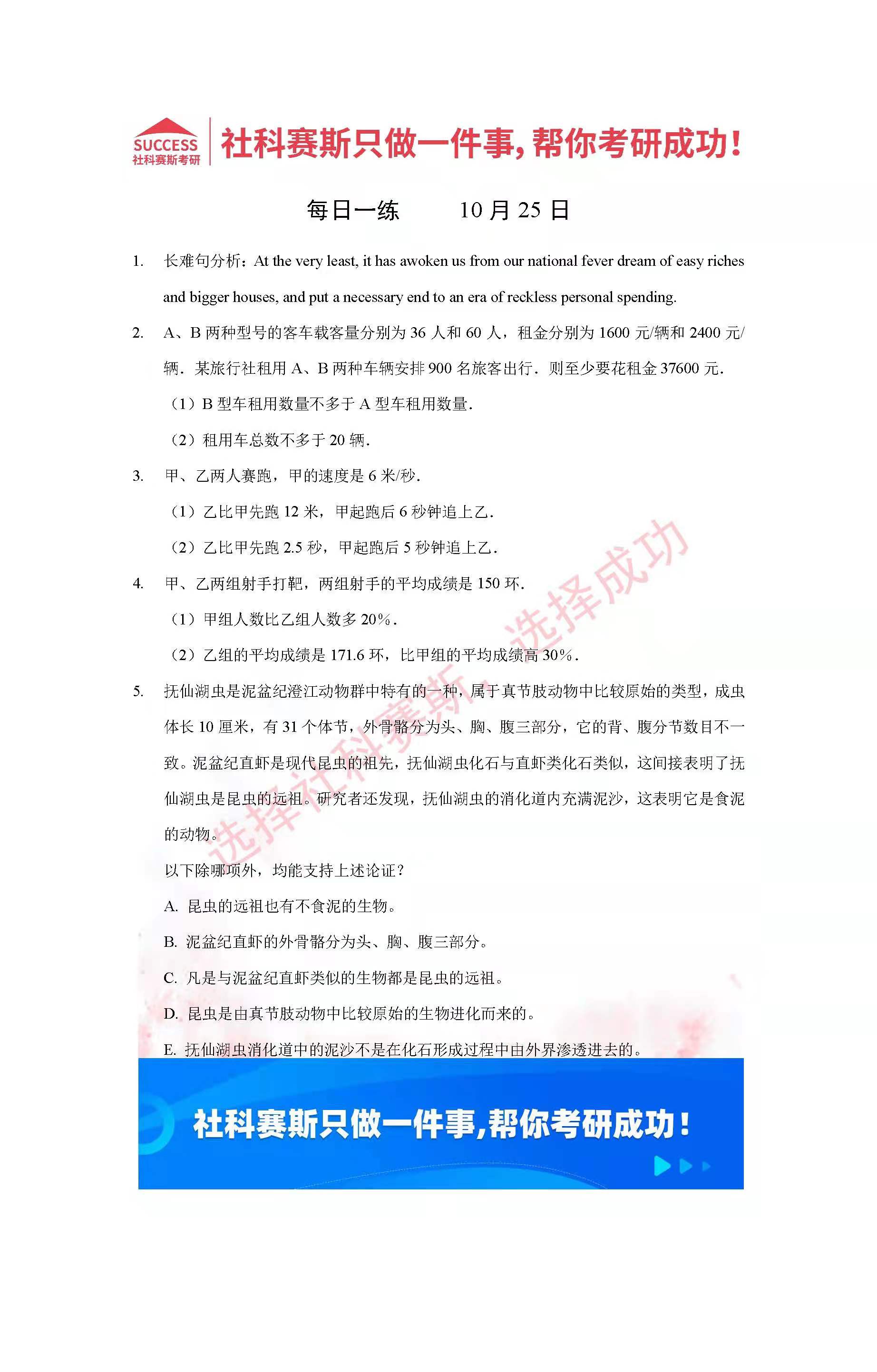 導讀:考研是一場持久戰,保持良好的學習習慣,是能確保復習高效的關鍵。今天社科賽斯MBA備考網小編整理了“2022管理類聯考10月25日每日一練及答案”的內容,希望能對廣大考生有所幫助。