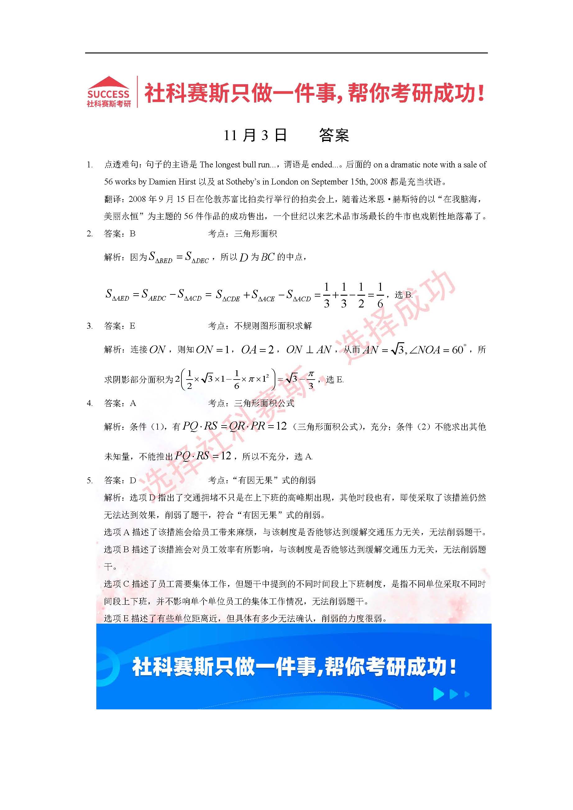 以上就是社科賽斯MBA備考網小編為大家整理2022管理類聯考11月3日每日一練及答案的全部內容,希望各位考生堅持利用起來,更多每日一練內容請持續關注MBA備考網管理類聯考每日一練。