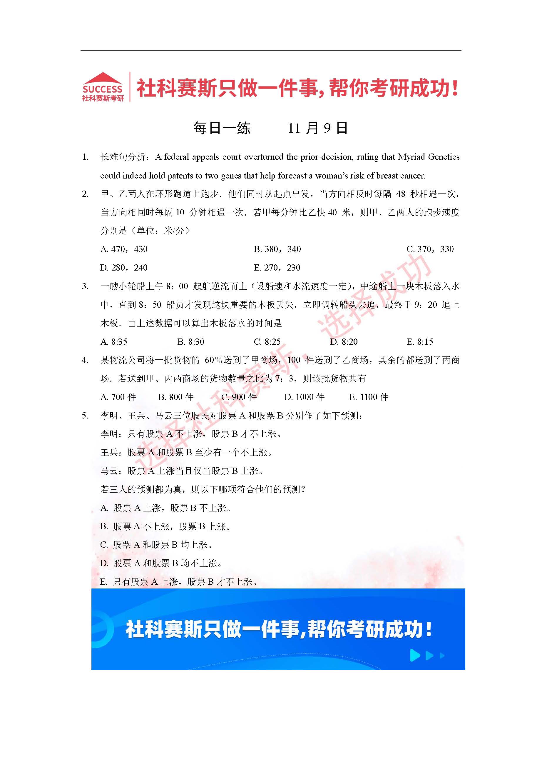 導(dǎo)讀:考研是一場(chǎng)持久戰(zhàn),保持良好的學(xué)習(xí)習(xí)慣,是能確保復(fù)習(xí)高效的關(guān)鍵。今天社科賽斯MBA備考網(wǎng)小編整理了“2022管理類聯(lián)考11月9日每日一練及答案”的內(nèi)容,希望能對(duì)廣大考生有所幫助。