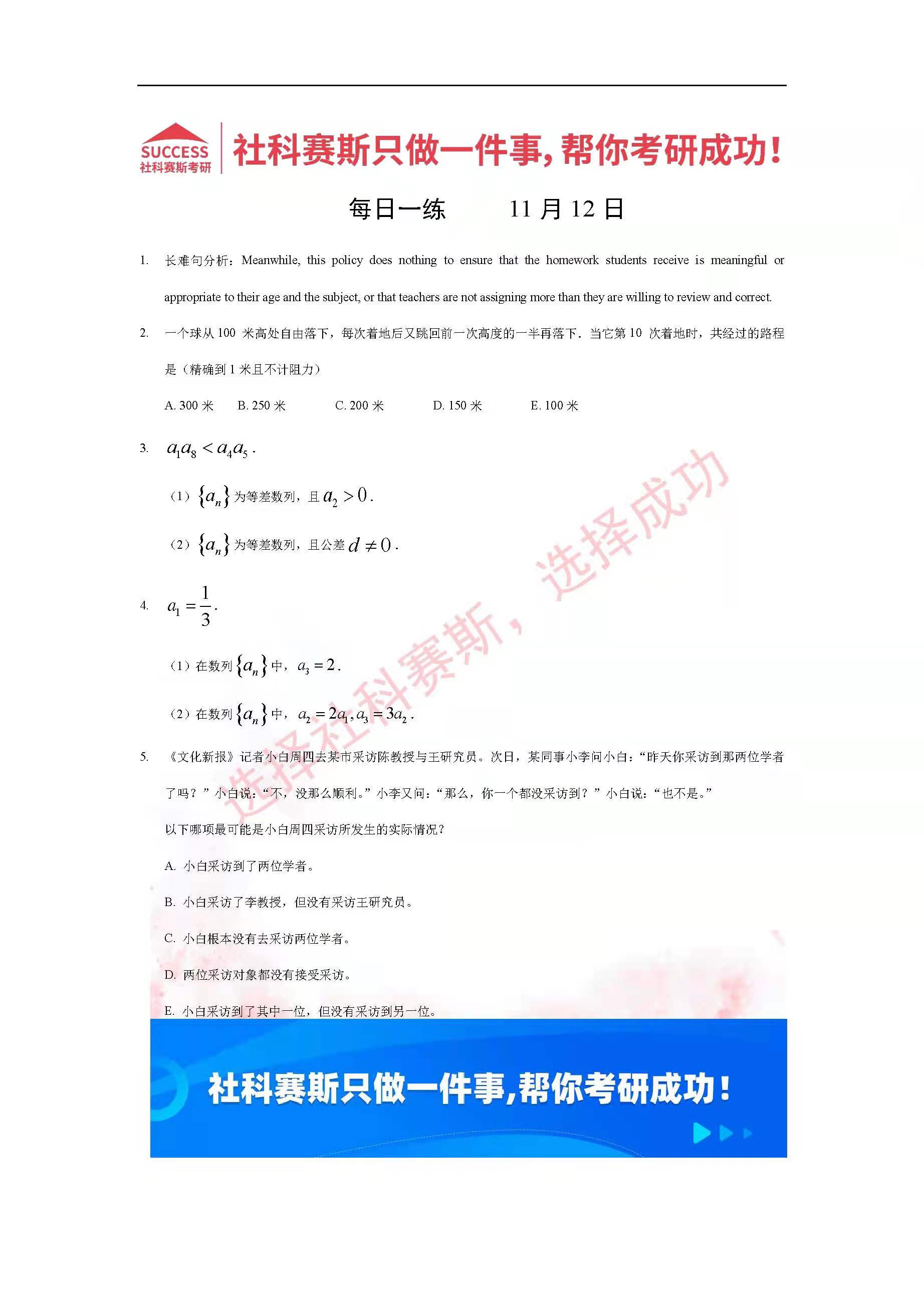 導(dǎo)讀:考研是一場持久戰(zhàn),保持良好的學(xué)習(xí)習(xí)慣,是能確保復(fù)習(xí)高效的關(guān)鍵。今天社科賽斯MBA備考網(wǎng)小編整理了“2022管理類聯(lián)考11月12日每日一練及答案”的內(nèi)容,希望能對廣大考生有所幫助。