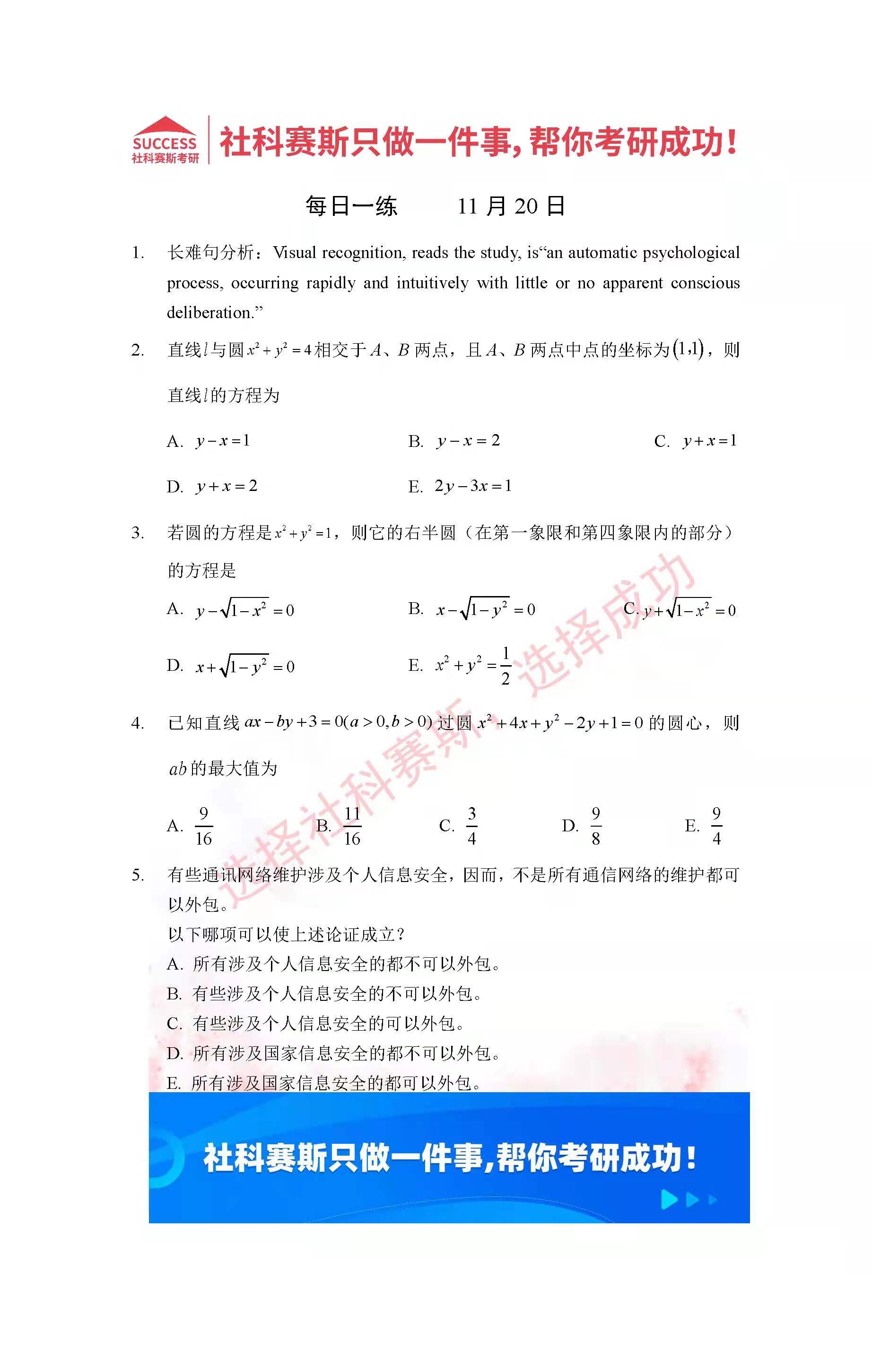 導讀:考研是一場持久戰,保持良好的學習習慣,是能確保復習高效的關鍵。今天社科賽斯MBA備考網小編整理了“2022管理類聯考11月20日每日一練及答案”的內容,希望能對廣大考生有所幫助。