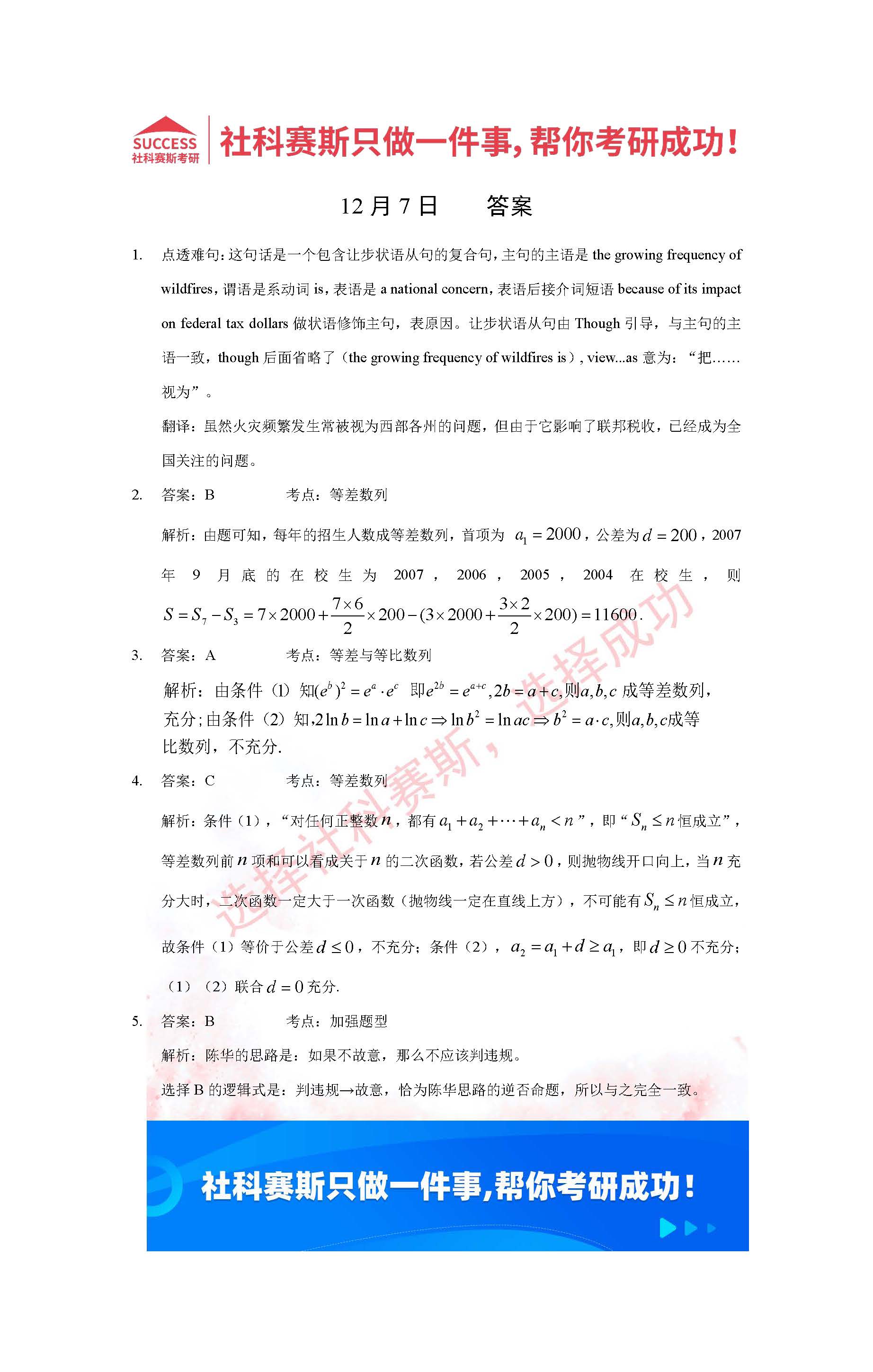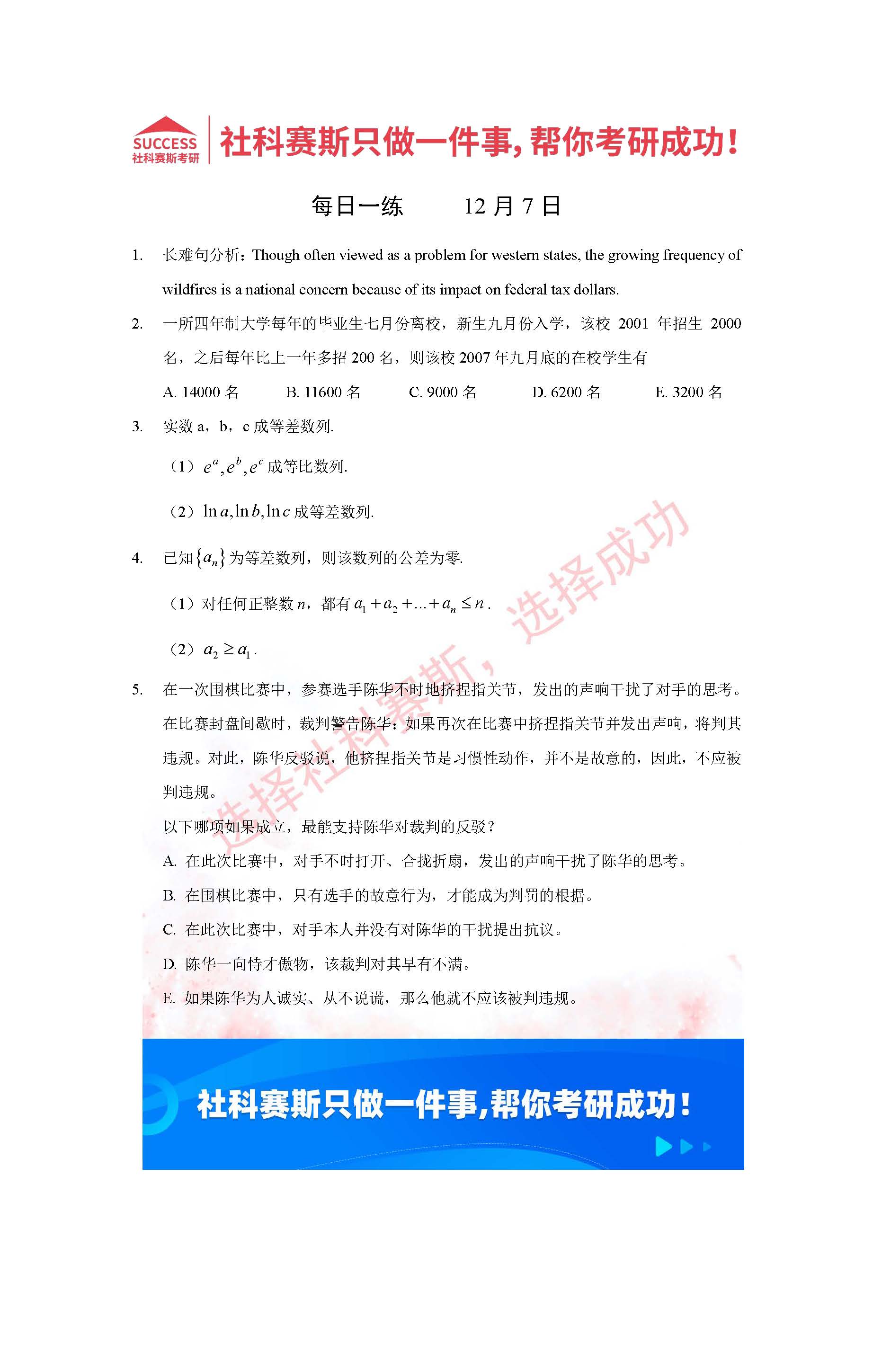 導(dǎo)讀:考研是一場(chǎng)持久戰(zhàn),保持良好的學(xué)習(xí)習(xí)慣,是能確保復(fù)習(xí)高效的關(guān)鍵。今天社科賽斯MBA備考網(wǎng)小編整理了“2022管理類聯(lián)考12月7日每日一練及答案”的內(nèi)容,希望能對(duì)廣大考生有所幫助。