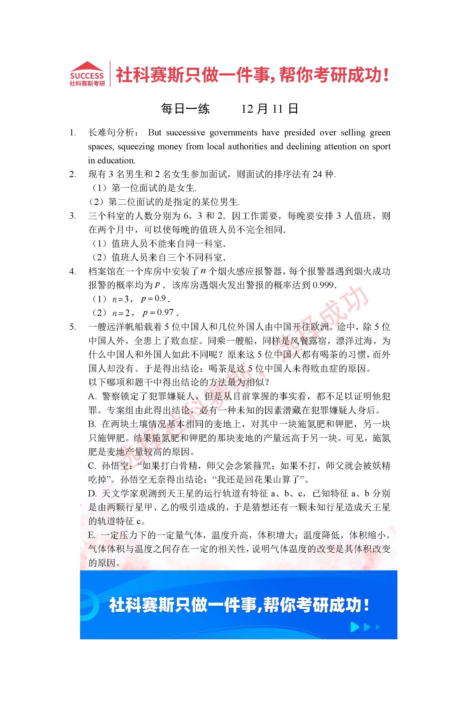 導讀:考研是一場持久戰,保持良好的學習習慣,是能確保復習高效的關鍵。今天社科賽斯MBA備考網小編整理了“2022管理類聯考12月11日每日一練及答案”的內容,希望能對廣大考生有所幫助。