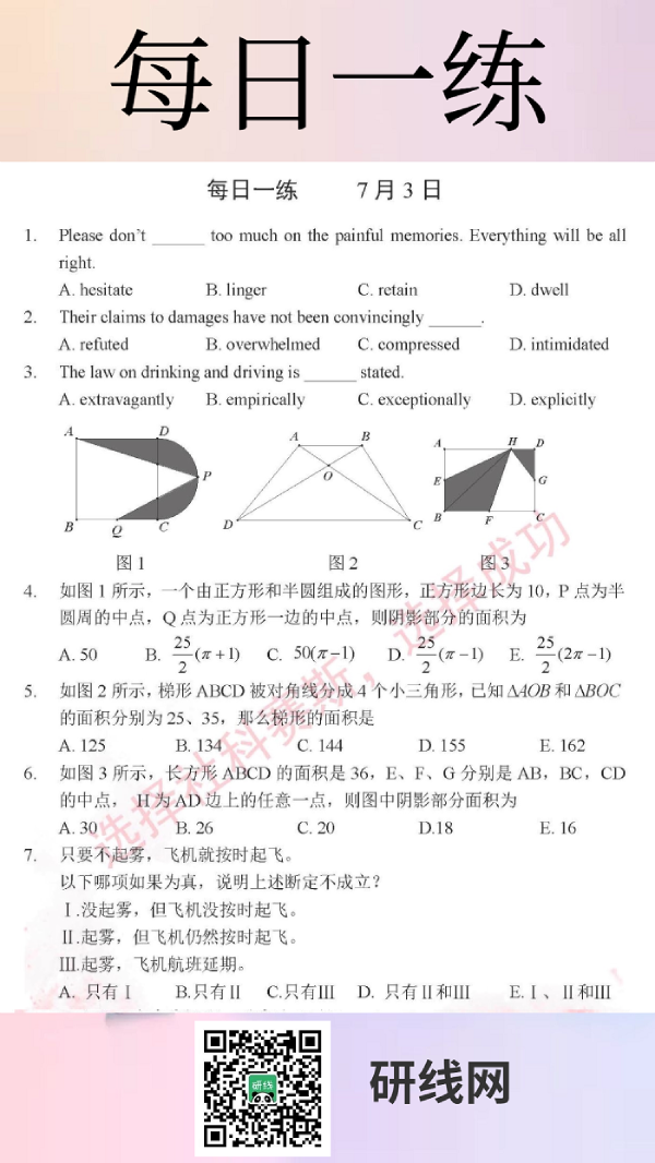 以上就是今日每日一練的全部?jī)?nèi)容,跟著每日一練,考研輕松復(fù)習(xí)!更多考試練習(xí),盡在“每日一練”欄目。