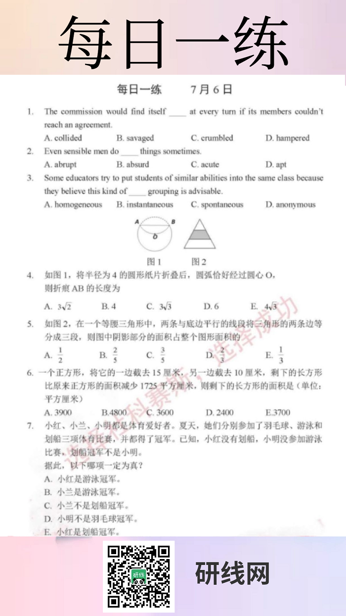 以上就是今日每日一練的全部內容,跟著每日一練,考研輕松復習!更多考試練習,盡在“每日一練”欄目。