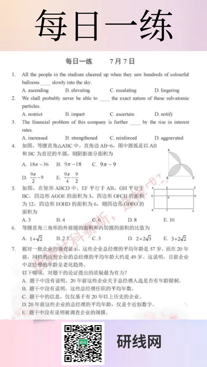以上就是今日每日一練的全部內容,跟著每日一練,考研輕松復習!更多考試練習,盡在“每日一練”欄目。
