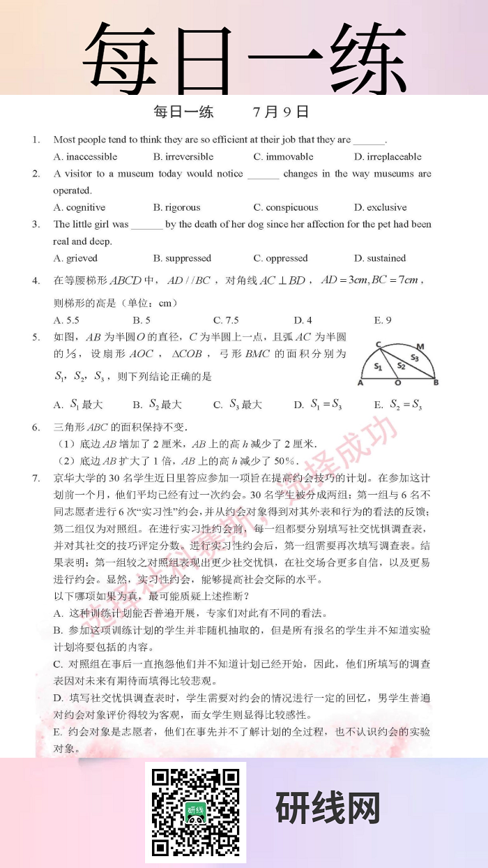 以上就是今日每日一練的全部內容,跟著每日一練,考研輕松復習!更多考試練習,盡在“每日一練”欄目。