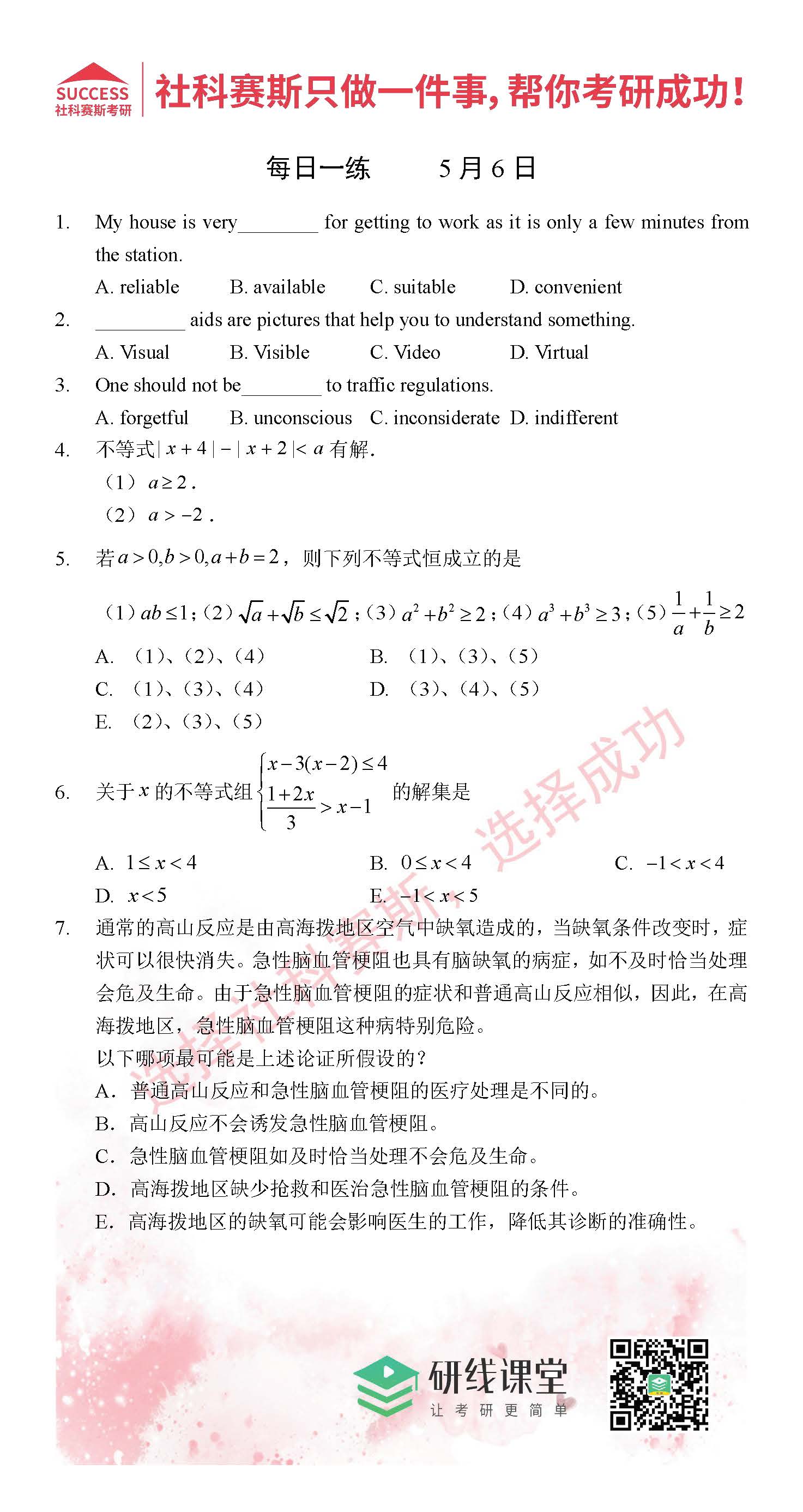考研是一場持久戰(zhàn),保持良好的學(xué)習(xí)習(xí)慣,是能確保復(fù)習(xí)高效的關(guān)鍵。MBA備考網(wǎng)小編整理了管綜的每日一練,希望能對(duì)廣大考生有所幫助。
