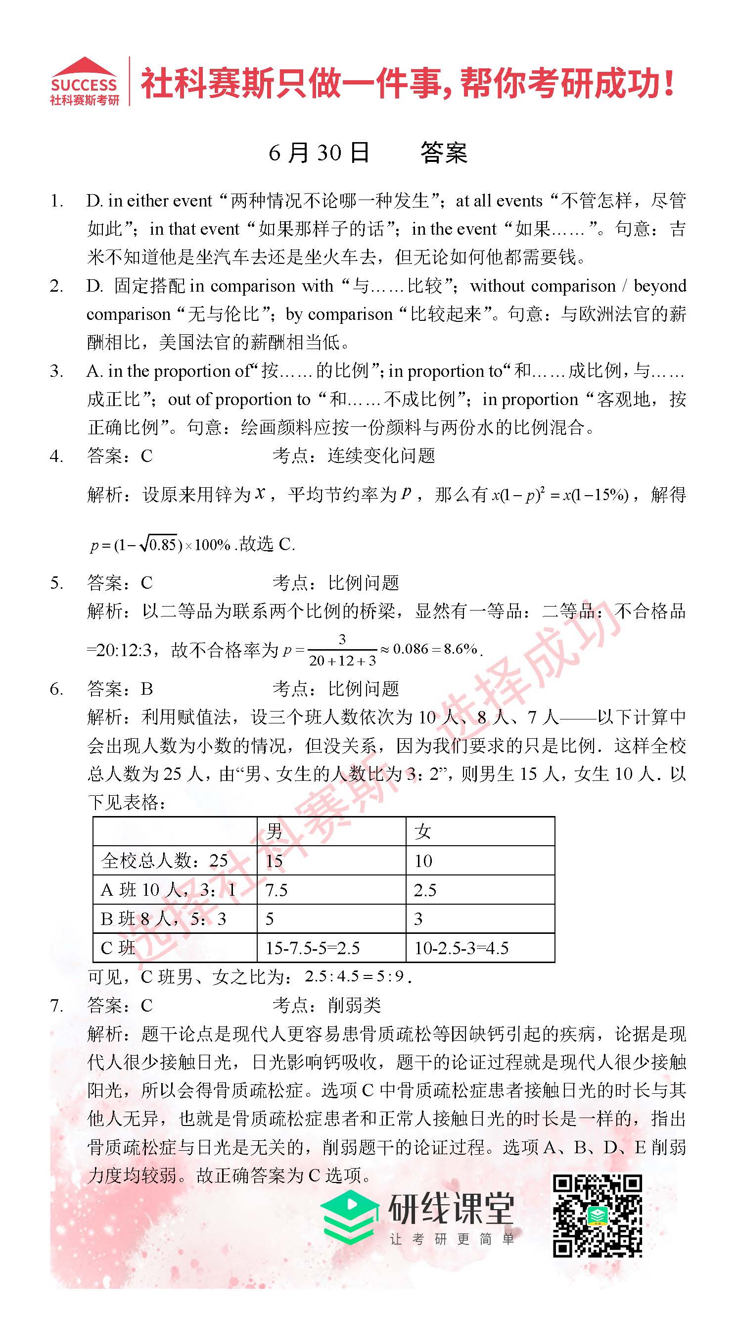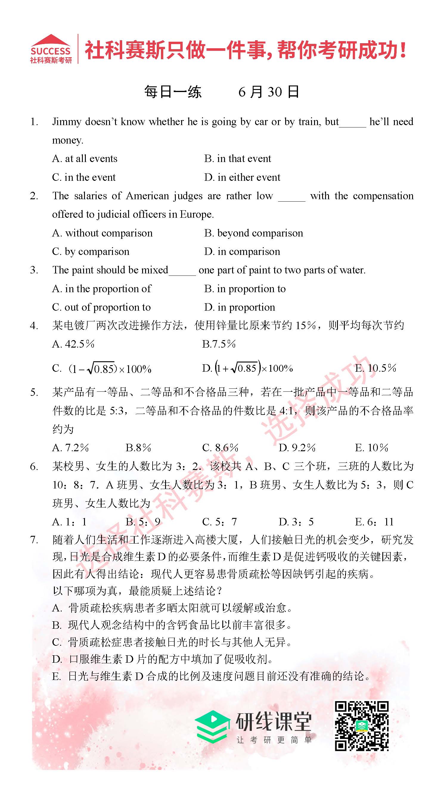 以上就是MBA備考網小編為大家提供的今日的每日一練“2021管理類聯考6月30日每日一練及答案”的全部內容,希望各位考生堅持利用起來,更多每日一練內容請持續關注MBA備考網管理類聯考每日一練