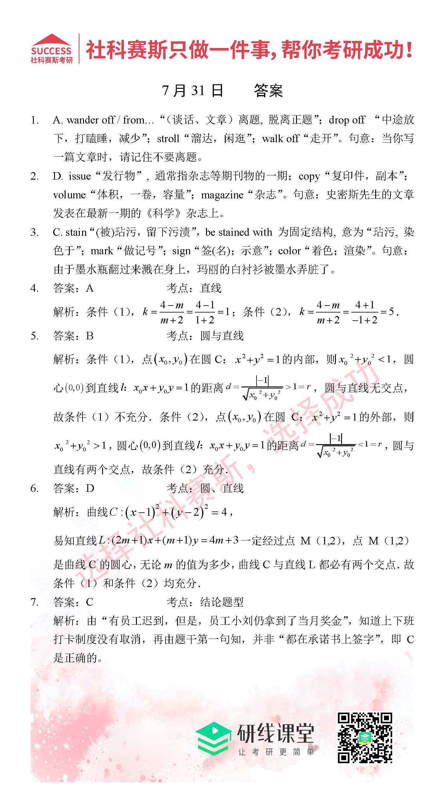 以上就是MBA備考網小編為大家提供的今日每日一練“2021管理類聯考7月31日每日一練及答案”的全部內容,希望各位考生堅持利用起來,更多每日一練內容請持續關注MBA備考網管理類聯考每日一練
