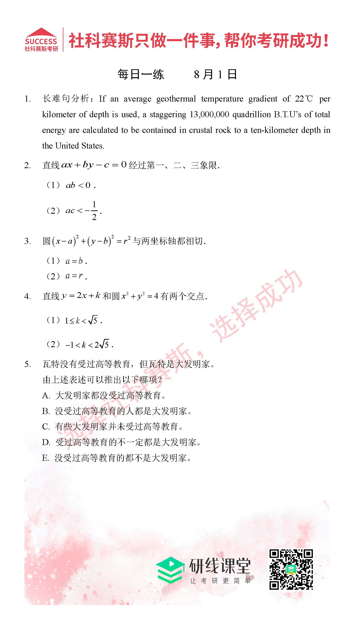 以上就是MBA備考網(wǎng)小編為大家提供的今日每日一練“2021管理類(lèi)聯(lián)考8月1日每日一練及答案”的全部?jī)?nèi)容,希望各位考生堅(jiān)持利用起來(lái),更多每日一練內(nèi)容請(qǐng)持續(xù)關(guān)注MBA備考網(wǎng)管理類(lèi)聯(lián)考每日一練