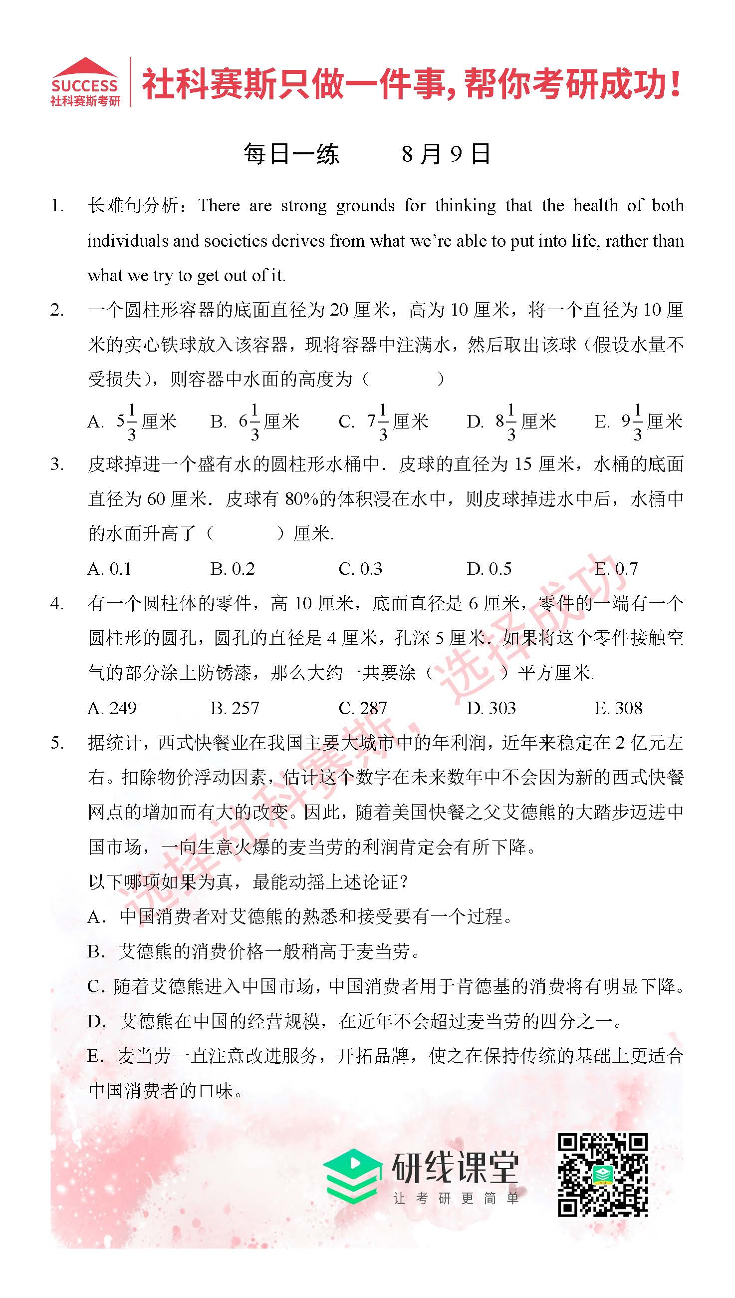 好文速遞:管理類聯(lián)考8月份精選習(xí)題匯總