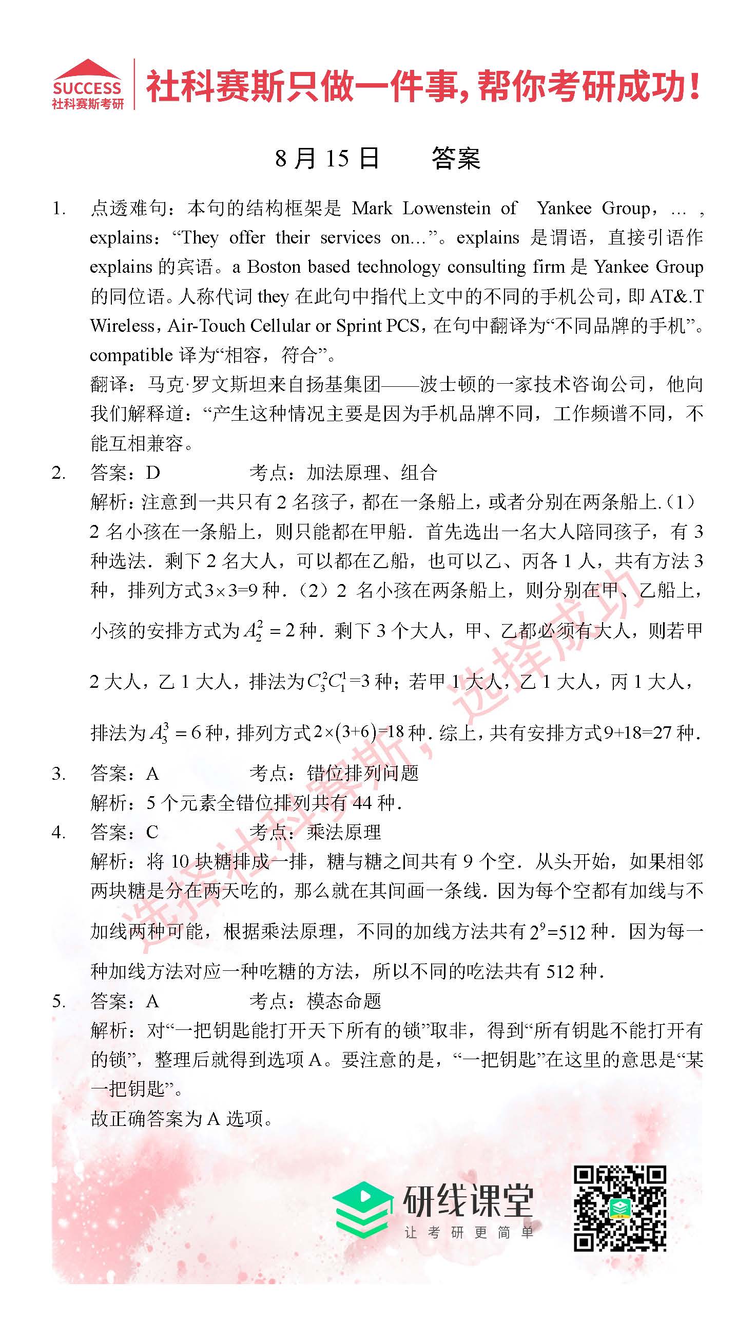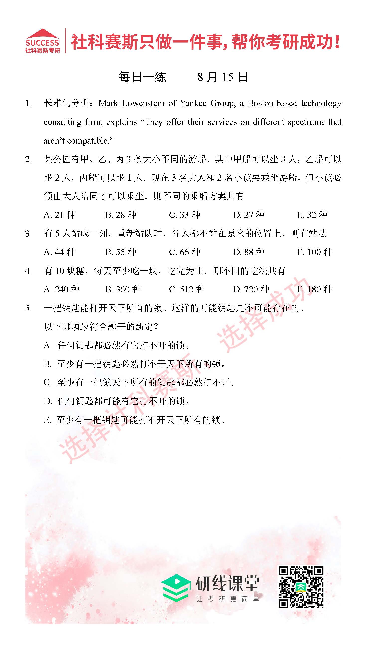 以上就是MBA備考網小編為大家提供的今日每日一練“2021管理類聯考8月15日每日一練及答案”的全部內容,希望各位考生堅持利用起來,更多每日一練內容請持續關注MBA備考網管理類聯考每日一練。