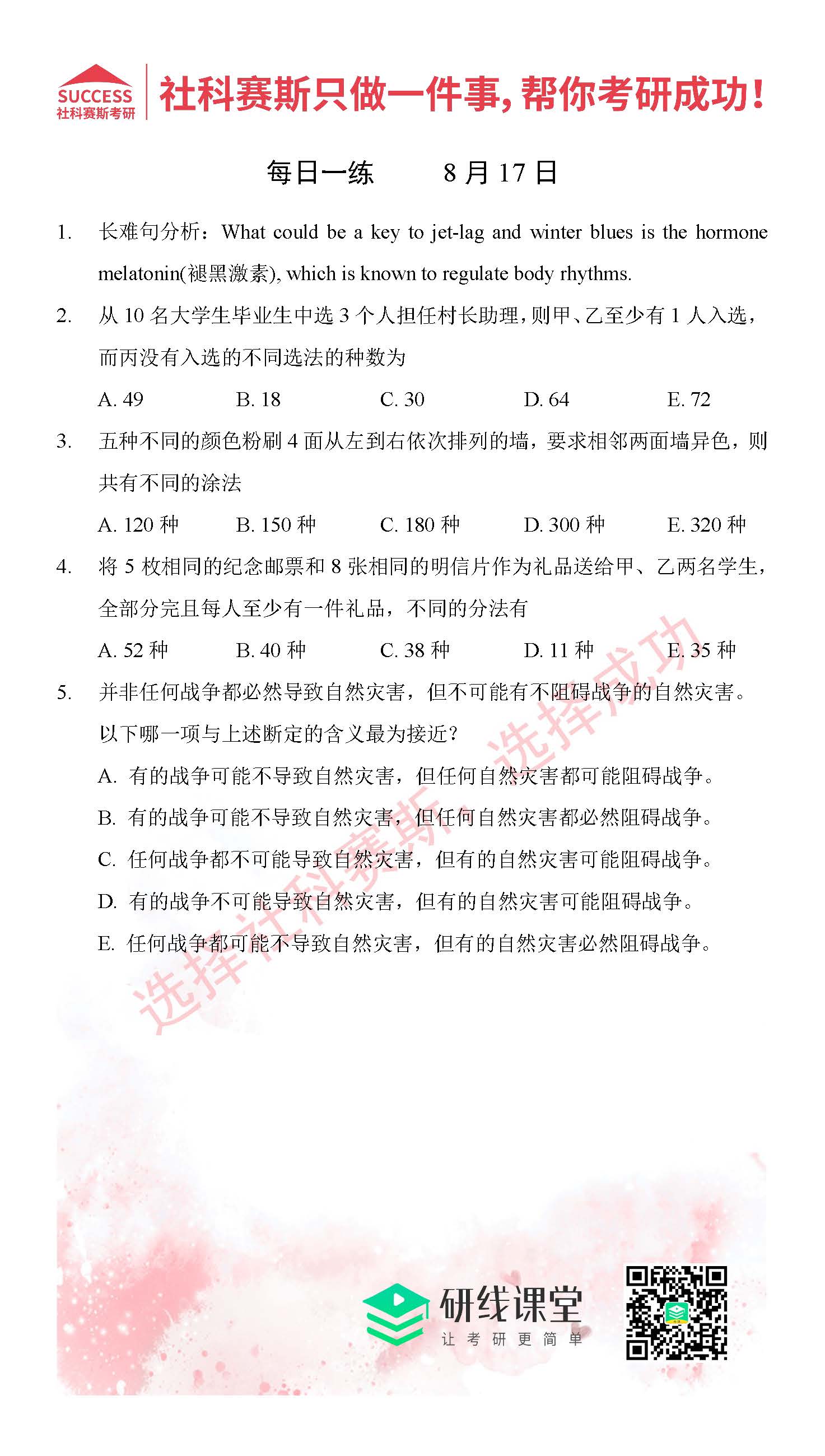 好文速遞:管理類聯考8月份精選習題匯總