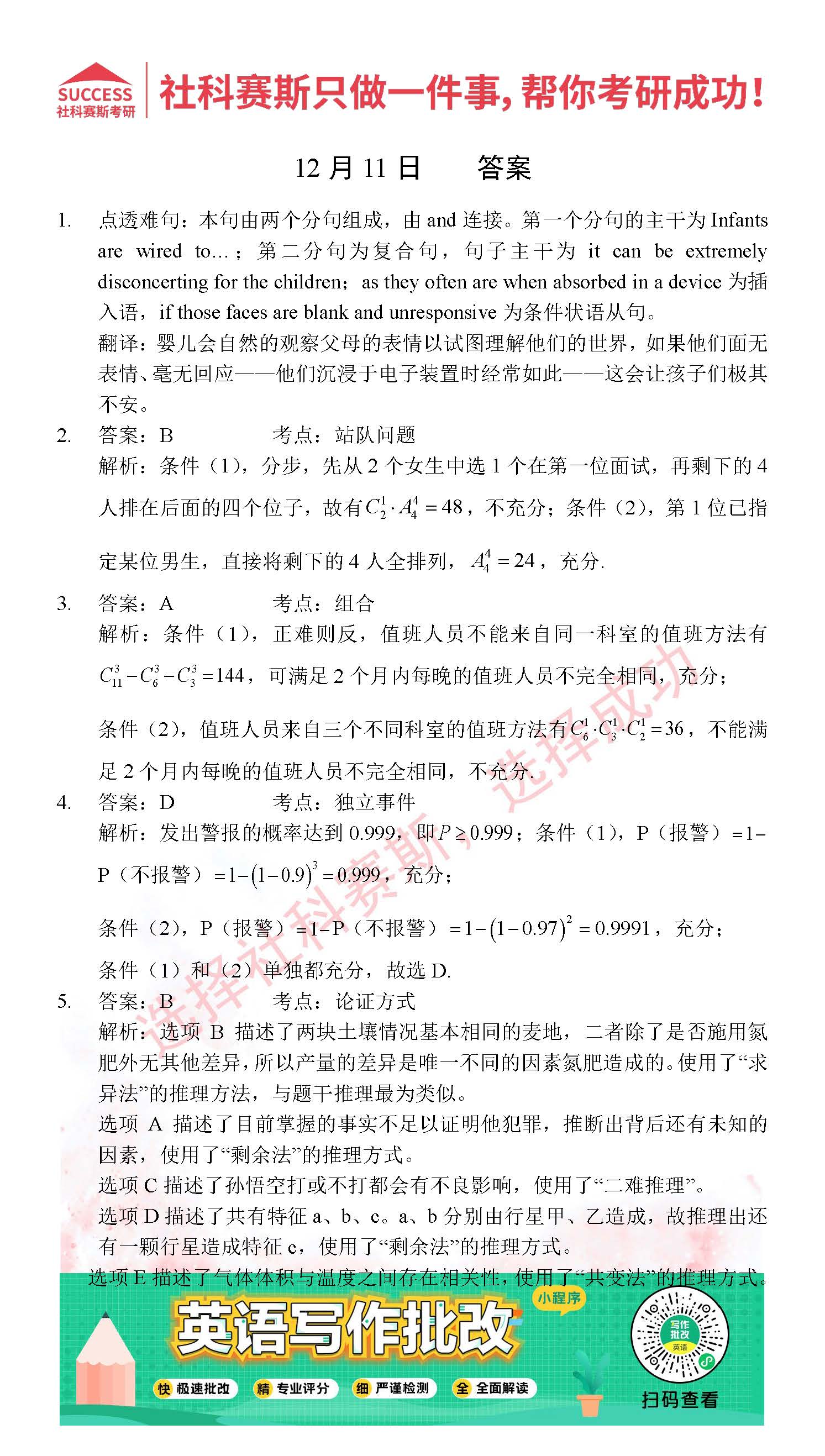 導讀:考研是一場持久戰(zhàn),保持良好的學習習慣,是能確保復習高效的關鍵。今天社科賽斯MBA備考網小編整理了“2021管理類聯(lián)12月11日每日一練及答案”的內容,希望能對廣大考生有所幫助。