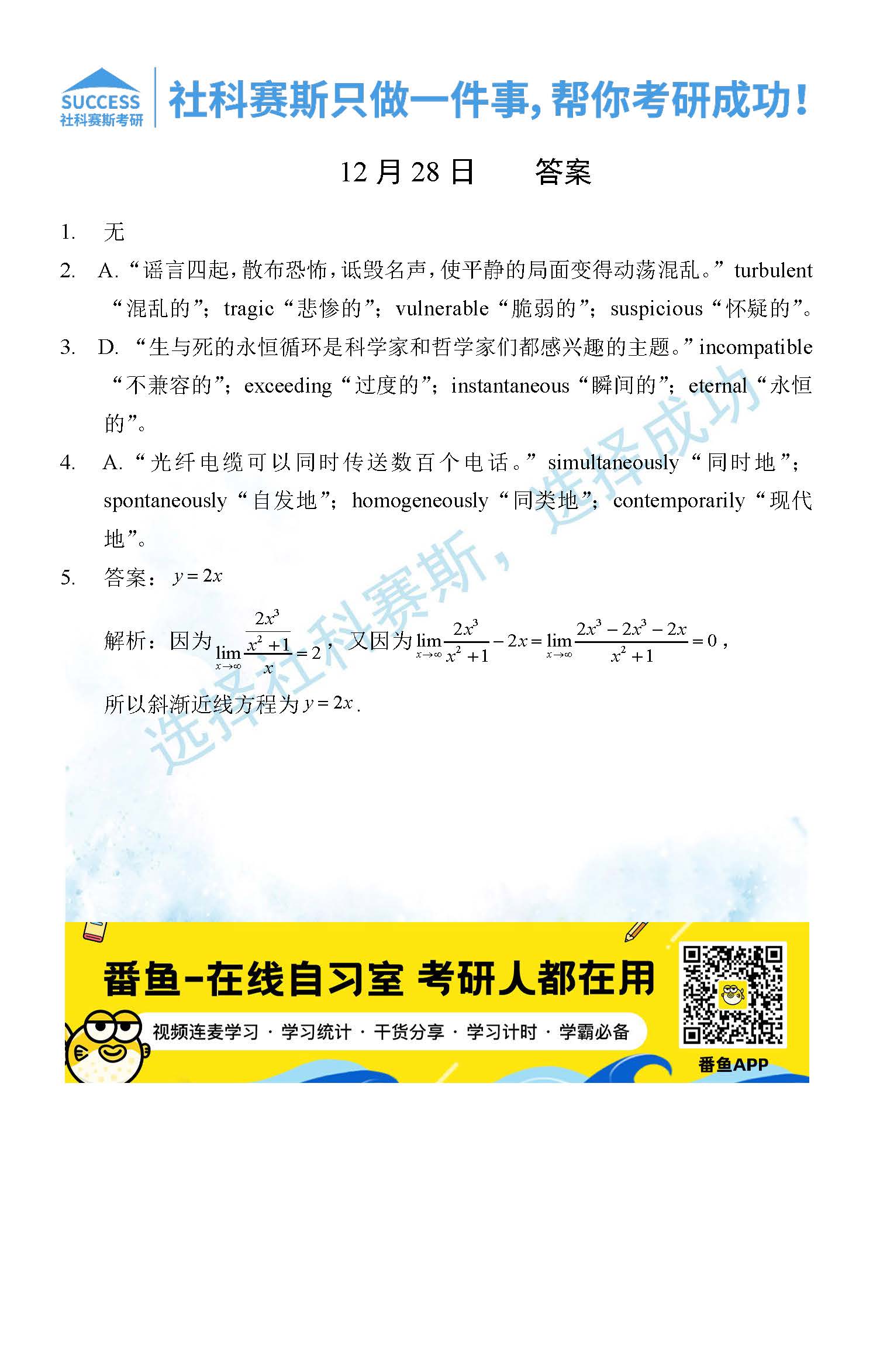 導讀:考研是一場持久戰(zhàn),保持良好的學習習慣,是能確保復習高效的關鍵。今天社科賽斯MBA備考網(wǎng)小編整理了“2021管理類聯(lián)12月28日每日一練及答案”的內(nèi)容,希望能對廣大考生有所幫助。