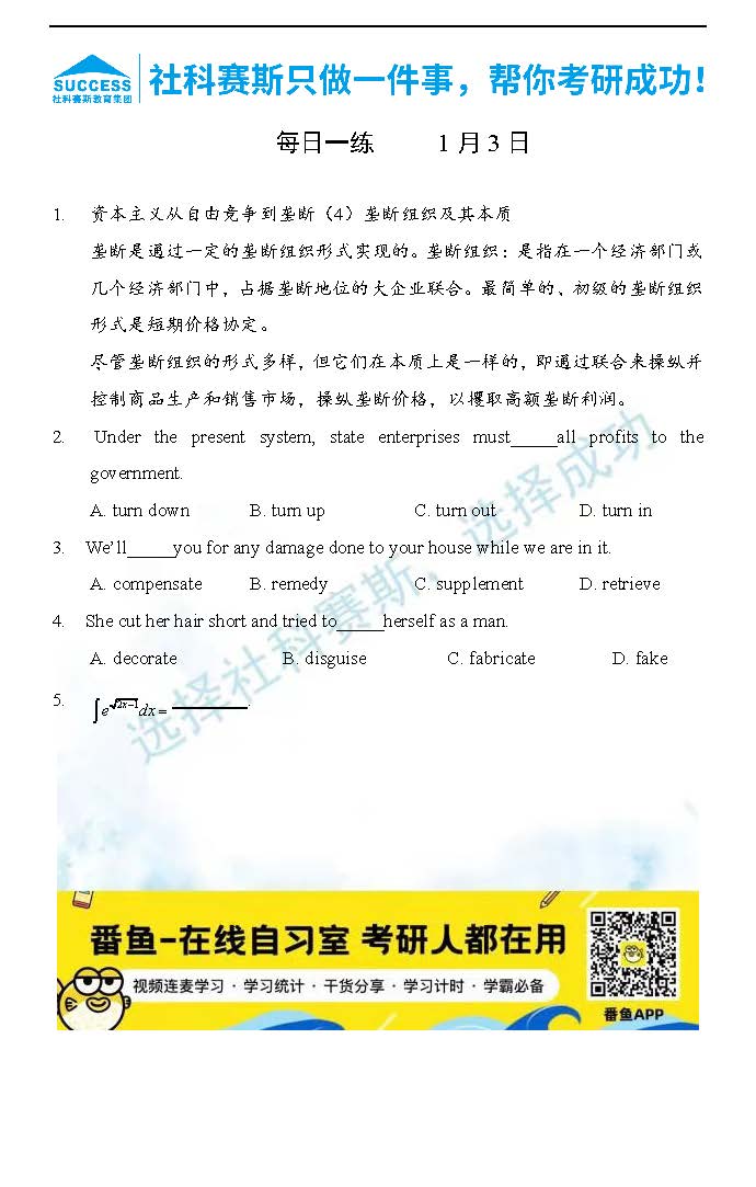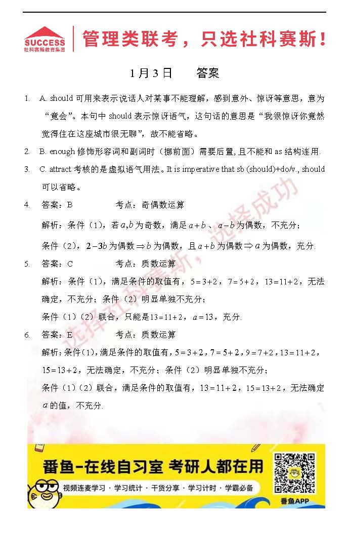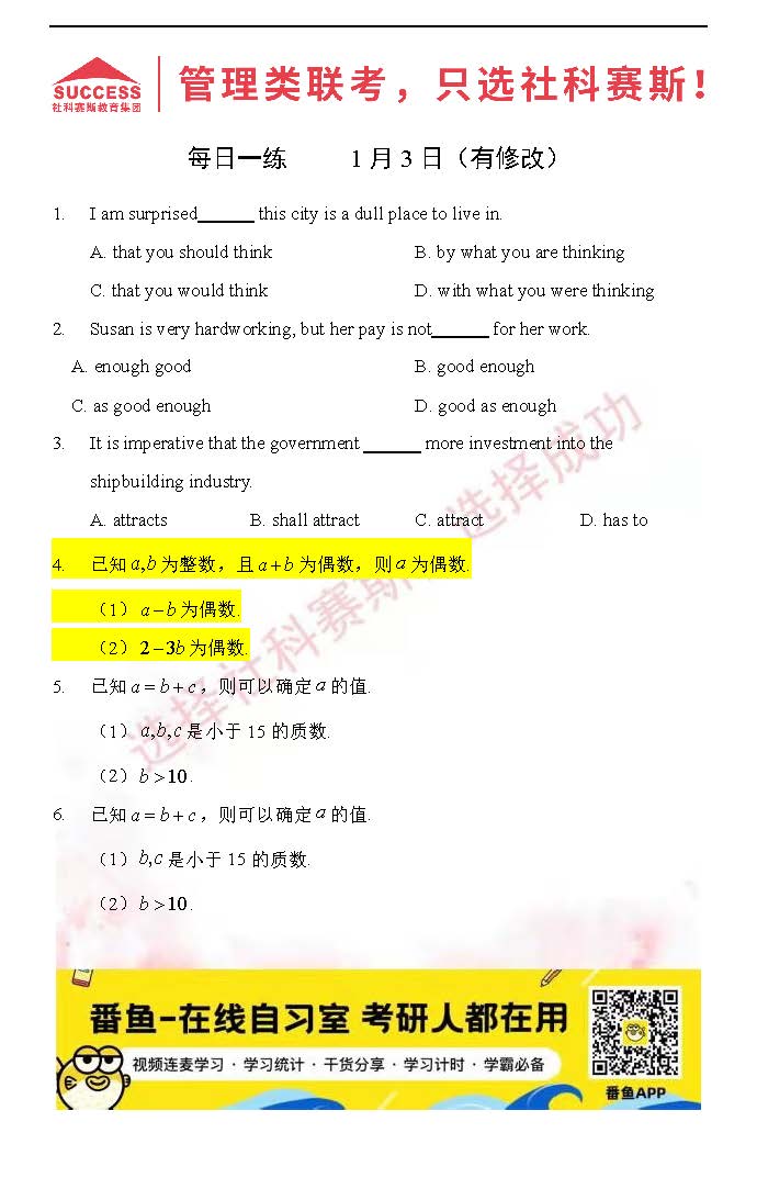 導讀:考研是一場持久戰,保持良好的學習習慣,是能確保復習高效的關鍵。今天社科賽斯MBA備考網小編整理了“2022管理類聯1月3日每日一練及答案”的內容,希望能對廣大考生有所幫助。