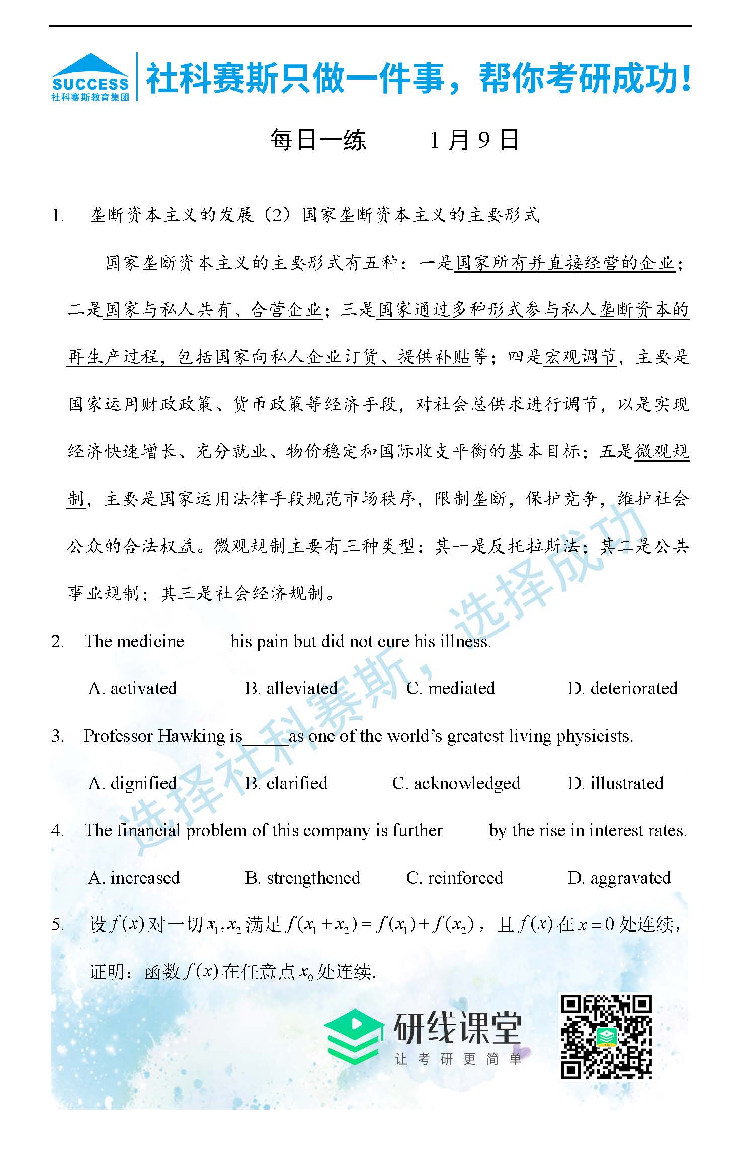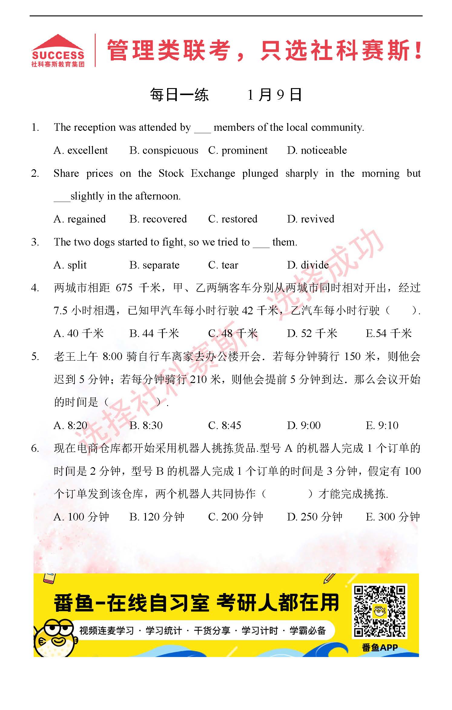 導(dǎo)讀:考研是一場持久戰(zhàn),保持良好的學(xué)習(xí)習(xí)慣,是能確保復(fù)習(xí)高效的關(guān)鍵。今天社科賽斯MBA備考網(wǎng)小編整理了“2022管理類聯(lián)1月9日每日一練及答案”的內(nèi)容,希望能對(duì)廣大考生有所幫助。