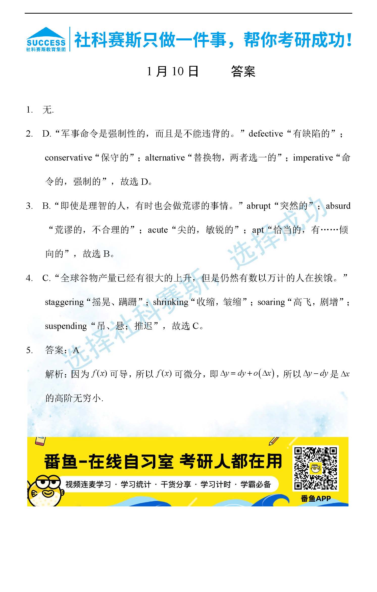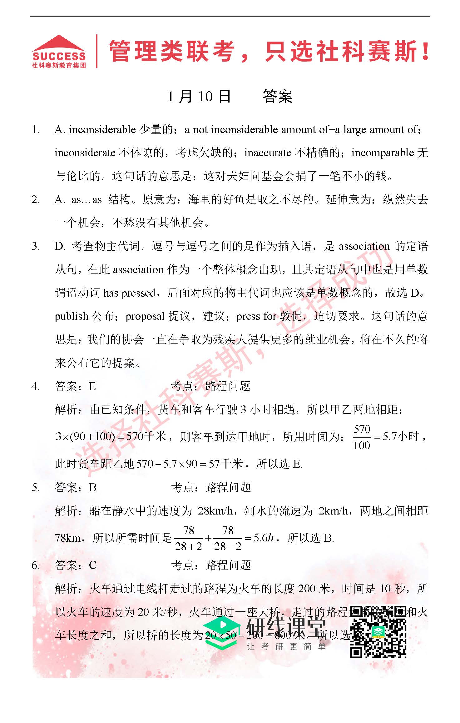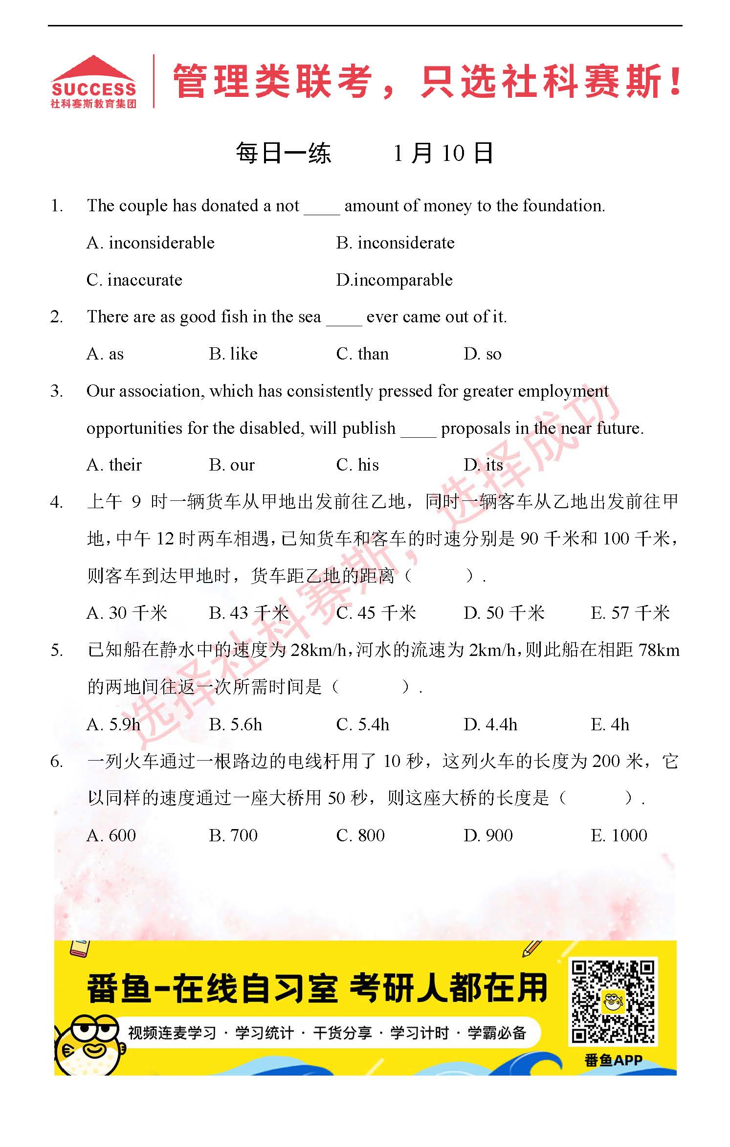 2022管理類聯(lián)考1月10日每日一練及答案”