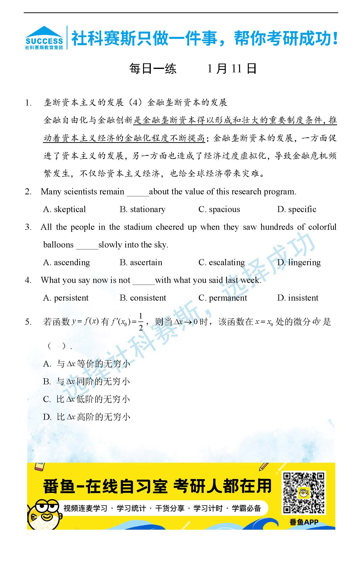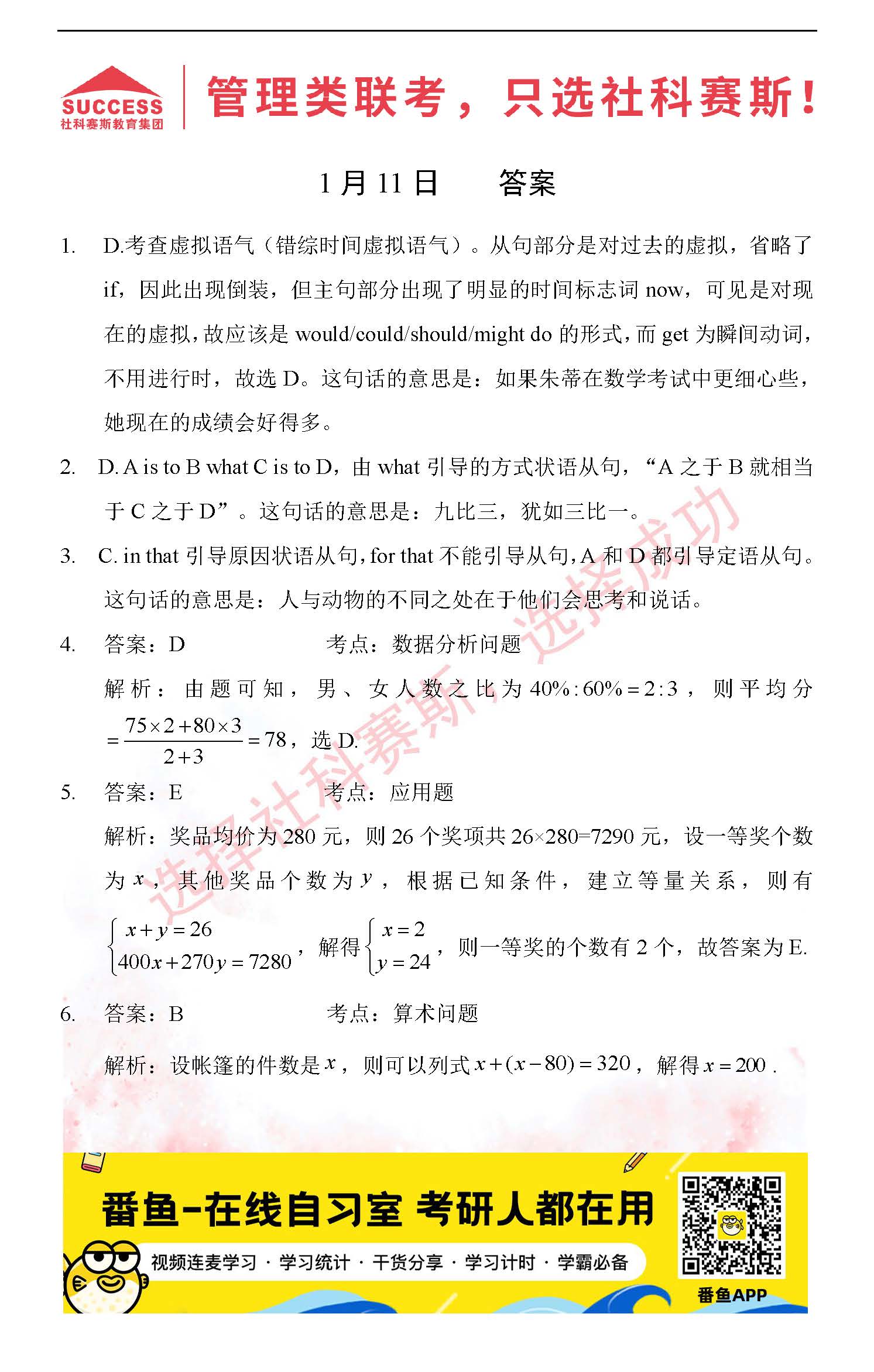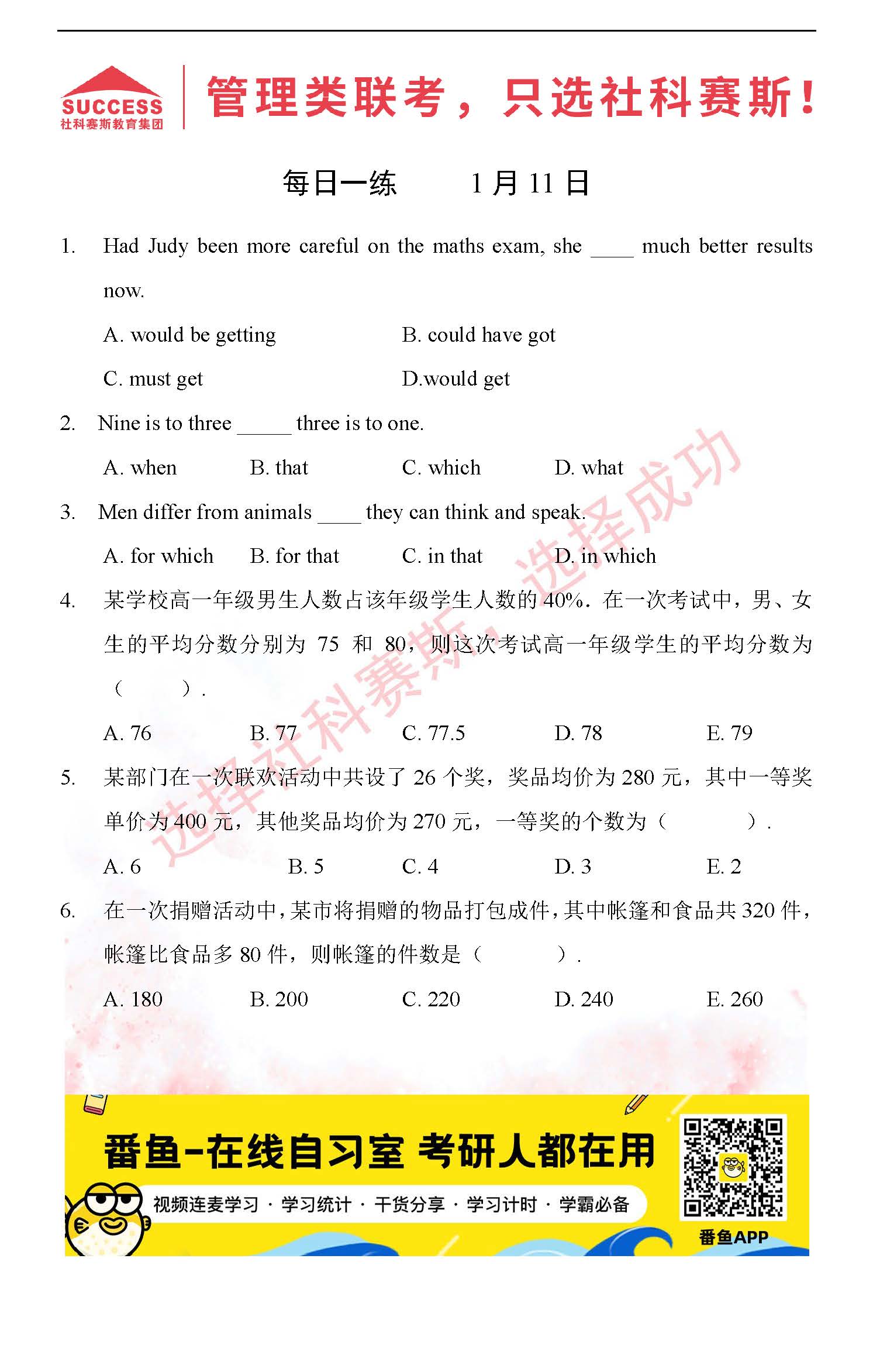 導讀:考研是一場持久戰,保持良好的學習習慣,是能確保復習高效的關鍵。今天社科賽斯MBA備考網小編整理了“2022管理類聯1月11日每日一練及答案”的內容,希望能對廣大考生有所幫助。