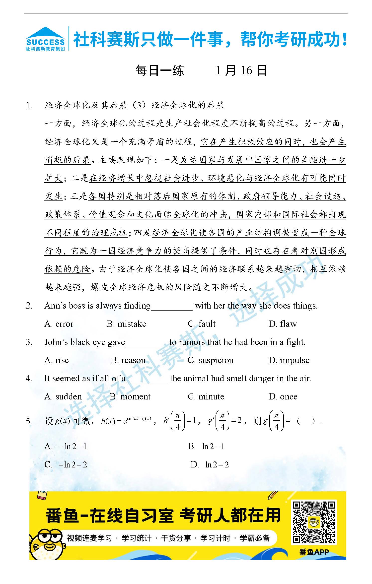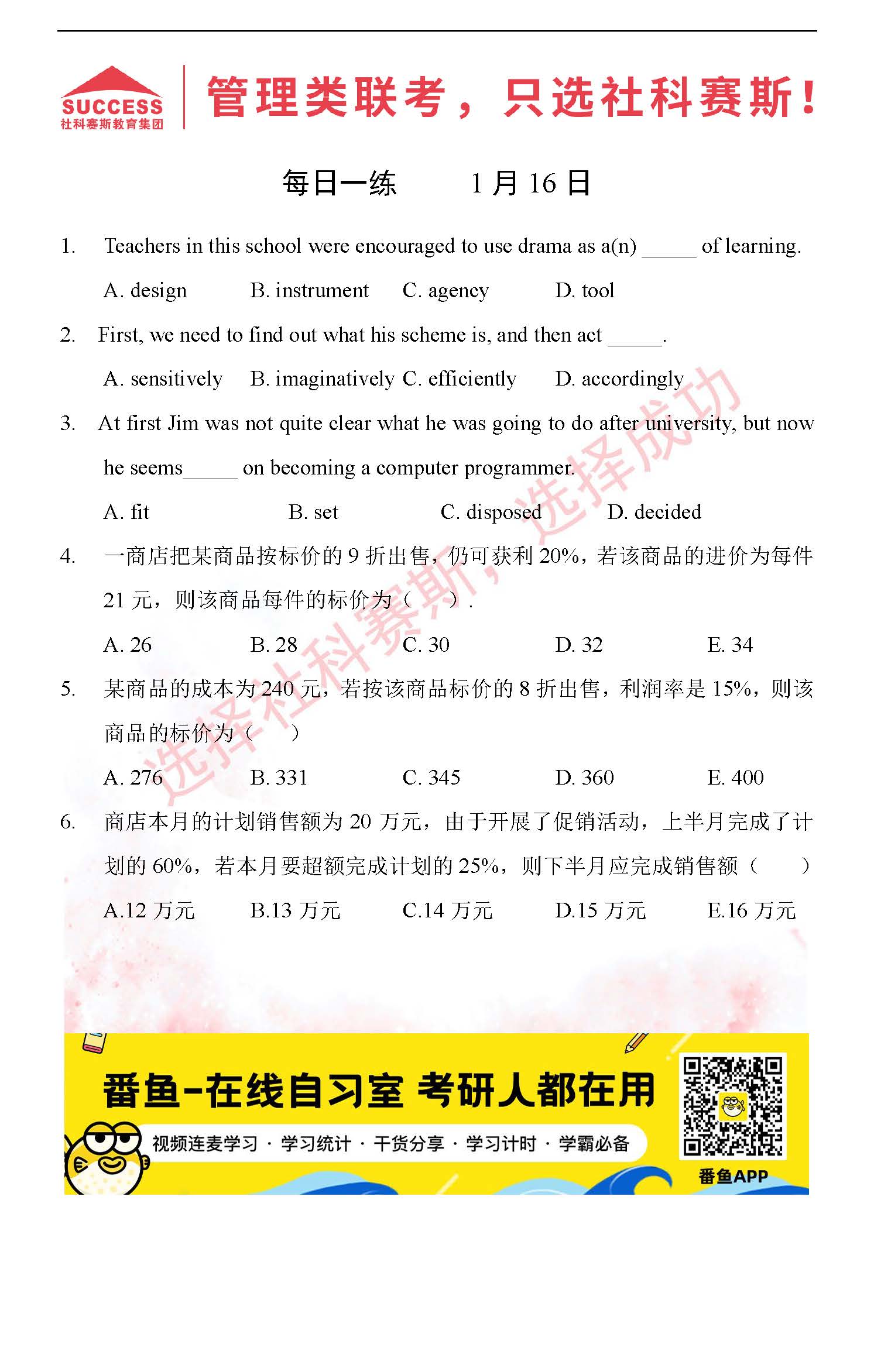 導讀:考研是一場持久戰,保持良好的學習習慣,是能確保復習高效的關鍵。今天社科賽斯MBA備考網小編整理了“2022管理類聯1月16日每日一練及答案”的內容,希望能對廣大考生有所幫助。